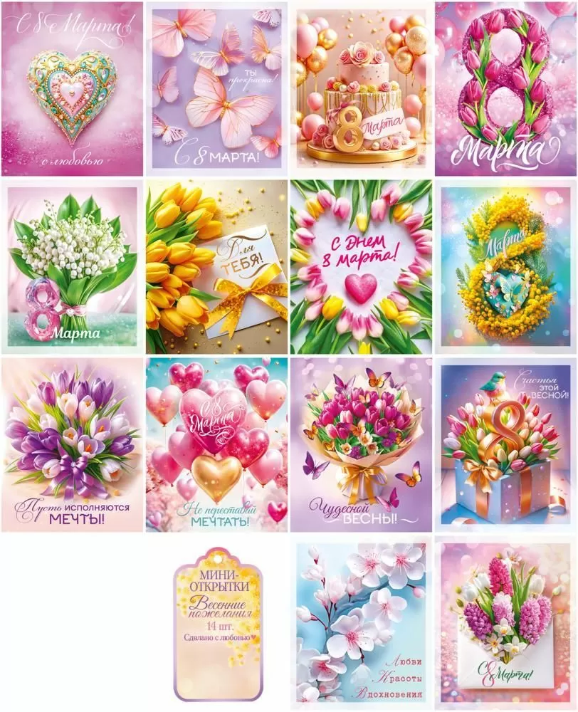 Набор мини-открыток «8 марта. Весенние пожелания»