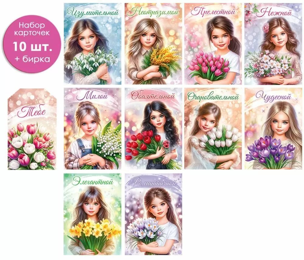 Набор мини-открыток «8 Марта», 10 шт + бирка