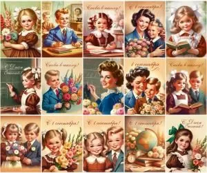 ----Набор мини-открыток «Первый раз в первый класс», 15 шт.+бирка