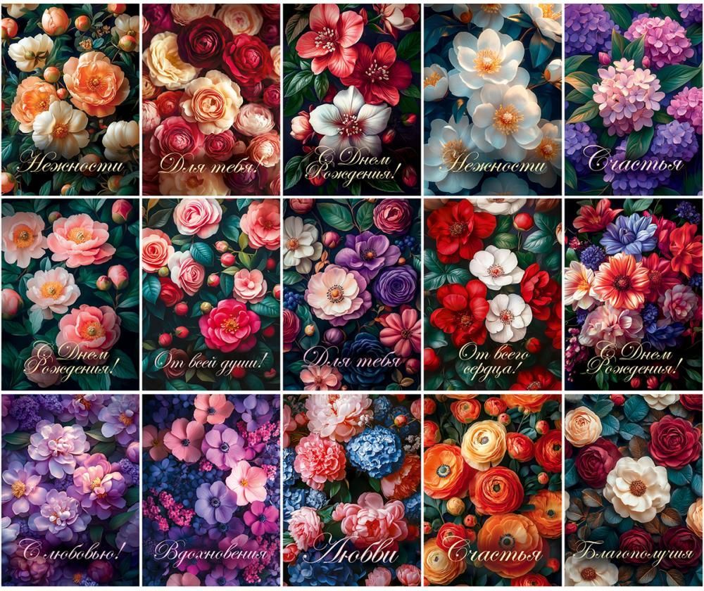 Набор открыток формата А7 представляет собой компактное решение для поздравлений и оформления подарков, рассчитанное как на розничное использование, так и на оптовые закупки для магазинов, цветочных салонов, офисов и служб доставки. Изделие выполнено из плотного картона, что обеспечивает стабильную форму, устойчивость к изгибам и износу при транспортировке и хранении, а также аккуратный внешний вид при передаче получателю. Размер каждой открытки около 100 × 70 мм позволяет удобно размещать ее в стандартных небольших конвертах или вкладывать в букет, коробку с подарком, пакет или сувенирную продукцию, не увеличивая общий объём отправления. Лицевая сторона оформлена детализированными цветочными композициями в насыщенной цветовой гамме с различными надписями поздравительного характера: «Нежности», «Для тебя», «С Днем Рождения», «От всей души», «От всего сердца», «Счастья», «Любви», «Благополучия» и другими, что делает набор универсальным для большинства поводов — дня рождения, юбилея, благодарности, знака внимания, корпоративных поздравлений. Внутренняя сторона открыток без текста, что удобно для тиражного использования: можно вписывать индивидуальные пожелания от руки, использовать фирменный штамп, наклейку с логотипом или печатный текст, адаптируя содержание под конкретное мероприятие или бренд. Отсутствие дополнительной отделки упрощает складирование, позволяет компактно размещать открытки в витринах, на стойках или в кассовой зоне и снижает риск повреждения поверхности при частом перелистывании покупателями. В упаковке 1, что удобно для поштучной выкладки, формирования ассортимента из разных дизайнов и гибкого управления остатками на складе. Набор открыток может использоваться как самостоятельный товар, как сопутствующий продукт к подарочной и цветочной продукции, а также в качестве расходного материала для офисов и сервисных компаний, где требуется регулярное оформление поздравлений клиентам и партнёрам.