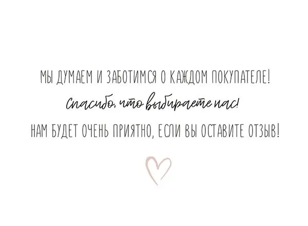 Набор бирок с надписью «Спасибо за заказ!» — идеальное дополнение к товарной упаковке. В комплект входят 100 карточек с милым рисунком и теплой надписью для покупателе на обороте.