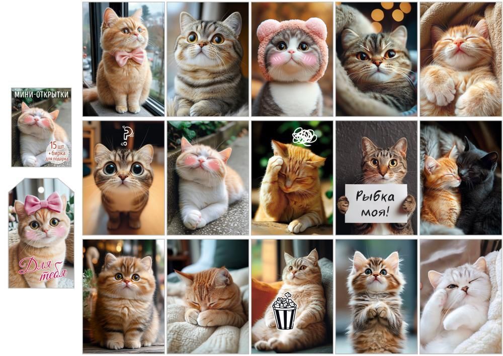 Набор мини-открыток «Пожелания от котиков», 15 шт.+ бирка