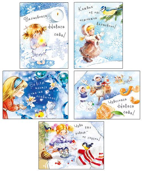 Набор открыток формата А5 выполнен из плотного картона с фигурной вырубкой контура, что обеспечивает аккуратный внешний вид и стабильную геометрию изделий при хранении и транспортировке. Длина готового изделия составляет 158 мм, ширина 114 мм, размеры выдержаны с минимальными отклонениями, удобны для стандартных почтовых конвертов и витринных выкладок. В набор входит 1 открытка с новогодним оформлением: иллюстрации с детьми, зимними пейзажами, елочными украшениями и животными позволяют использовать изделие в ассортименте сезонной продукции для новогодних и рождественских продаж. Лицевая сторона имеет декоративную отделку: блестки в лаке радужные, создающие мерцающий эффект под искусственным и дневным освещением, при этом защитный лаковый слой снижает риск истирания рисунка при частом перекладывании и транспортировке. Внутри открытка без текста, что удобно для оптовых клиентов, формирующих универсальный ассортимент: изделие подходит для корпоративных поздравлений, розничной продажи в книжных и сувенирных магазинах, а также для использования в подарочных наборах разного ценового сегмента. Пустое внутреннее поле дает возможность наносить индивидуальные поздравления от руки, штампами или стикерами, а также использовать открытку как вложение к подарочным сертификатам и наборам сладостей. Картонная основа достаточно жесткая, чтобы открытка сохраняла форму в вертикальных дисплеях и настольных подставках, не деформировалась при кратковременном контакте с влагой и выдерживала пересылку в конверте при стандартных условиях. Набор открыток легко интегрируется в существующую линейку новогодней полиграфии за счет нейтральной, ориентированной на семейную и детскую аудиторию тематики, подходит для выкладки у кассы, сезонных стендов и интернет-продаж с доставкой. Количество в упаковке: 1.