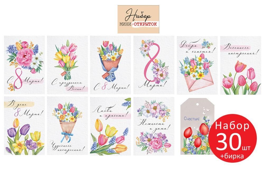 Набор открыток «8 Марта» (30 шт.)