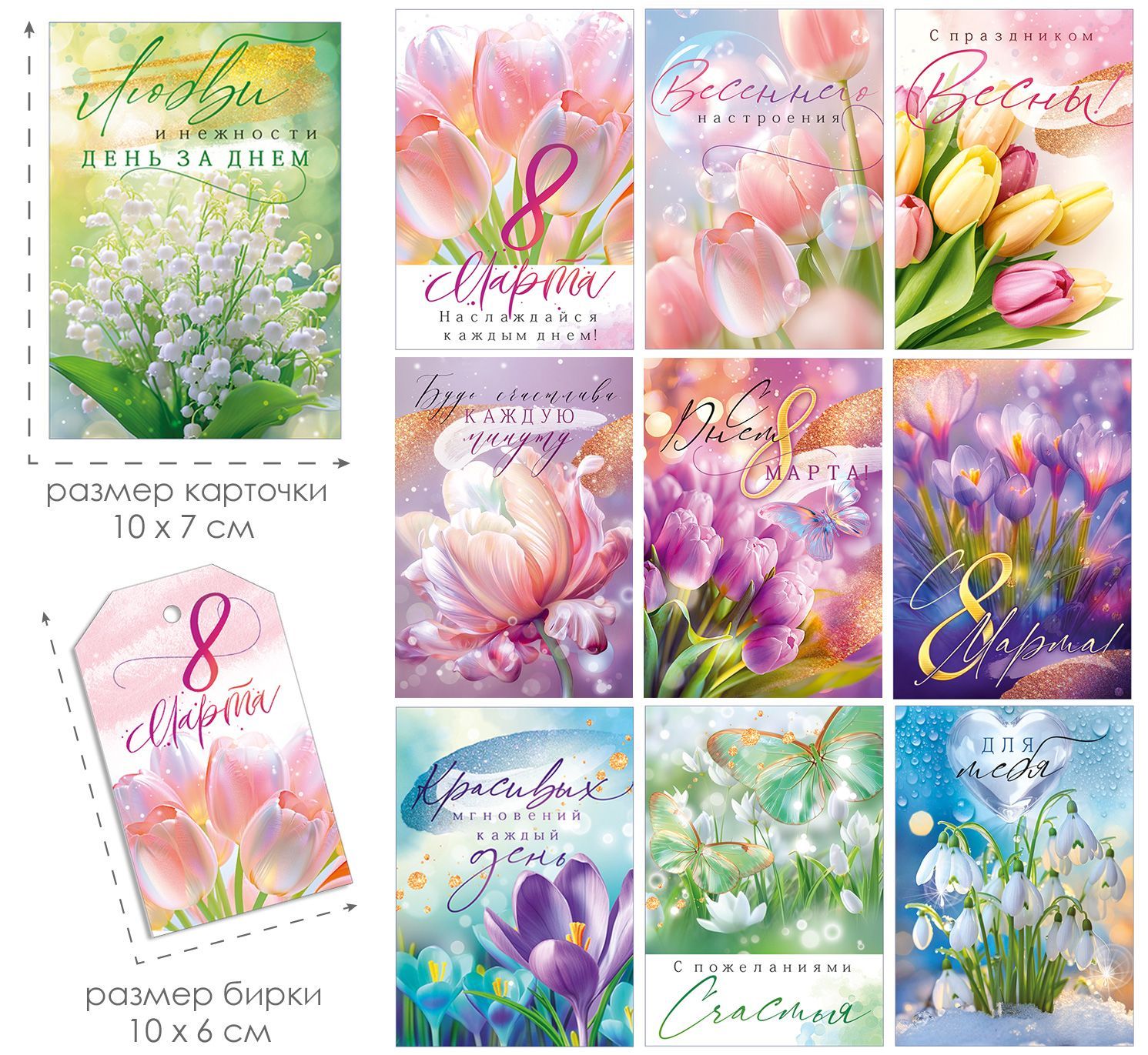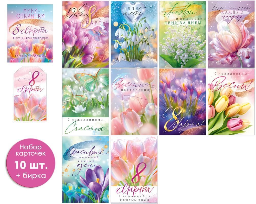 Набор мини-открыток «8 Марта», 10 шт.+бирка