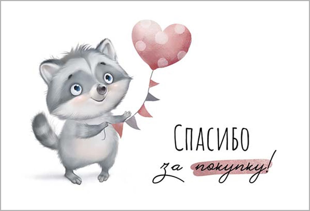 Набор открыток формата А7 представляет собой комплект из 100 двусторонних карточек из плотного картона с печатным текстом «Спасибо за покупку!». Готовое изделие имеет габариты 79 × 55 мм, что удобно для размещения в стандартных коробках, почтовых отправлениях и пакетах без увеличения объёма посылки и затрат на логистику. Материал основы обеспечивает стабильную геометрию, открытки не деформируются при хранении в стопках и выдерживают многократное перекладывание в процессе комплектования заказов. Лицевая сторона содержит полноцветное изображение енота с воздушным шаром в форме сердца и текст благодарности, что делает изделие подходящим для использования в интернет‑магазинах, шоурумах, розничных точках и сервисных компаниях как элемент фирменного сервиса. Обратная сторона также запечатана и может содержать дополнительный текст или использоваться для краткой надписи от руки, штампа или контактной информации компании, при этом структура картона позволяет писать шариковой ручкой или маркером без сильного протискивания. Отсутствие отделки упрощает переработку отходов и снижает риск появления трещин или сколов покрытия по краям при транспортировке. Компактный формат и единые размеры удобны для автоматизированной и ручной фасовки, а также для хранения крупного запаса на складе в стандартных лотках. Набор рассчитан на регулярное использование в потоке заказов и позволяет поддерживать единый стиль упаковки, создавая понятный для конечного покупателя визуальный сигнал благодарности за покупку без необходимости разрабатывать и печатать индивидуальные вкладыши. Количество в упаковке: 1. Количество элементов: 100.