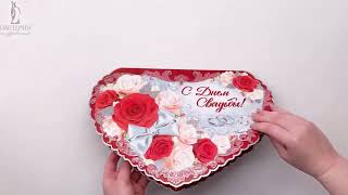 едином стиле. Формат открытки: А3. Формат конверта: Евро. Выразите радость за красивую пару и поздравьте с образованием новой семьи! Дополните свой презент с помощью открытки, посвященной одному из самых важных событий в жизни двух любящих людей – свадьбе. Открытка – самый верный способ продемонстрировать своё трепетное отношение к ее получателям и внимательность! Большой формат поздравительной открытки точно не оставит молодоженов равнодушными, а объёмное 3Д оформление даже удивит и порадует молодоженов.