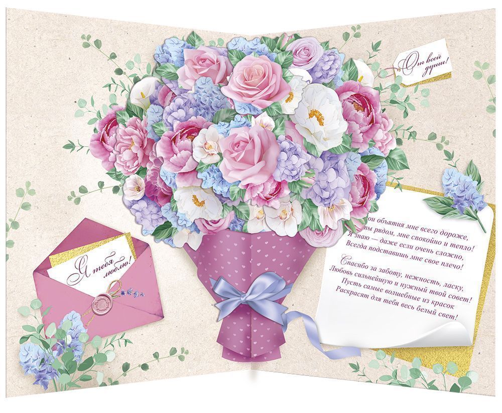 Открытка 3D формата А3 выполнена из плотного картона и предназначена для поздравления мамы с любым семейным праздником: днём рождения, 8 Марта, годовщиной или другим значимым событием. Лицевая сторона оформлена крупной цветочной композицией в пастельной гамме с надписью «Любимой Мамочке» и дополнительными декоративными элементами, что обеспечивает выразительный внешний вид при выкладке на полке и в витрине. Внутри расположен разворот с объёмным 3D‑элементом и заранее нанесённым поздравительным текстом, что сокращает время выбора и подготовки подарка для конечного покупателя и снижает нагрузку на персонал при консультировании. Конструкция открытки дополнена конвертом для денег, интегрированным в внутренний блок и рассчитанным на стандартные купюры, что позволяет использовать изделие одновременно как поздравление и подарочный носитель денежного вклада или подарочного сертификата. Размер готового изделия 344 × 247 мм обеспечивает хорошую читаемость текста и заметность среди сопутствующей продукции, при этом формат остаётся удобным для транспортировки и складского хранения в стандартных коробах. Поверхность украшена золотой фольгой, создающей аккуратные акценты и повышающей износостойкость отдельных элементов дизайна за счёт дополнительного защитного слоя. Картонная основа устойчива к изгибам и удерживает форму 3D‑конструкции при многократном раскрывании, что важно при длительной выкладке и пересылке. Открытка поставляется по 1, что даёт возможность формировать ассортимент с точной дозировкой по сезонам и тиражам, комбинировать её с другими праздничными позициями и использовать как в розничной продаже поштучно, так и в оптовых партиях для сетей, киосков, цветочных салонов и интернет‑магазинов.