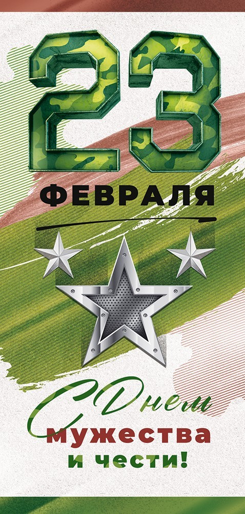 Открытка формата евро изготовлена из плотного картона и предназначена для оформления поздравлений к 23 февраля в деловой и личной сфере. Прямоугольная форма с размерами готового изделия 204 × 97 мм обеспечивает совместимость с распространёнными конвертами евроформата и удобство размещения на витринах, стойках и в почтовых отправлениях. Лицевая сторона оформлена тематической композицией: крупное числовое обозначение даты «23» в камуфляжной стилистике, надпись «Февраля», металлические звезды и текст «С Днём мужества и чести!», что подчёркивает приуроченность к государственному празднику и позволяет использовать изделие для поздравления широкого круга адресатов без персонализации. Картон обладает достаточной жёсткостью для сохранения формы при транспортировке и хранении, устойчив к незначительным механическим воздействиям, не деформируется при стандартных условиях эксплуатации и подходит для нанесения надписей шариковыми и гелевыми ручками, маркерами, тонкими фломастерами без растекания чернил. Внутренняя сторона оставлена под собственный текст, что удобно при оформлении корпоративных поздравлений, подписании от имени организации, коллектива или семьи, а также при использовании в составе подарочных наборов. Отсутствие отделки упрощает утилизацию после использования, снижает риск повреждений покрытия при пересылке и делает изделие универсальным для сочетания с различными видами упаковочной бумаги и конвертов. Компактные размеры способствуют рациональному хранению на складе и в торговой точке, удобны при фасовке и транспортировке крупными партиями. Нейтральный по обращению дизайн без указания конкретного получателя позволяет включать открытку в ассортимент для розничных магазинов, корпоративных заказчиков и организаций, формирующих стандартные поздравительные наборы к Дню защитника Отечества. Количество в упаковке: 10.