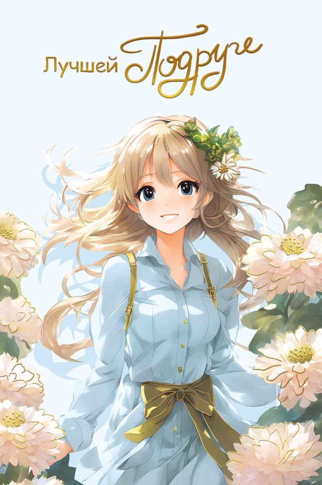 Открытка формата А5 предназначена для поздравления близкой подруги и может использоваться как самостоятельный подарок или дополнение к основному презенту. Изделие выполнено из плотного дизайнерского картона, что обеспечивает стабильную геометрию, устойчивость к изгибам и удобство при хранении и транспортировке в стандартных коробах и конвертах. Лицевая сторона оформлена полноцветным изображением в аниме-стилистике: фигура девушки на светлом фоне, окружённой крупными цветами, с акцентом на надписи «Лучшей подруге». Текстовое оформление дополнено фольгой золотой, за счёт чего надпись хорошо читается под разными углами освещения и визуально выделяется на витрине или в общей выкладке ассортимента. Внутри открытки предусмотрен заранее напечатанный поздравительный текст, что сокращает время подготовки к вручению для конечного покупателя и делает товар удобным для массовых сезонных продаж. Размер готового изделия 182 × 122 мм позволяет размещать открытку в распространённых почтовых и подарочных конвертах, а также использовать её в готовых подарочных наборах без доработки упаковки. Плотный картон сохраняет форму при длительном складском хранении, не деформируется при стандартных условиях транспортировки и подходит для выкладки как на полке, так и в вертикальных дисплеях. Универсальная дружеская тематика делает открытку актуальной для дня рождения, личных праздников, памятных дат и неформальных поздравлений, что упрощает планирование закупок и формирование базовой матрицы ассортимента. В упаковке 10 экземпляров, что удобно для оптовых поставок, формирования фасовок под розничную продажу и оптимизации складских остатков.