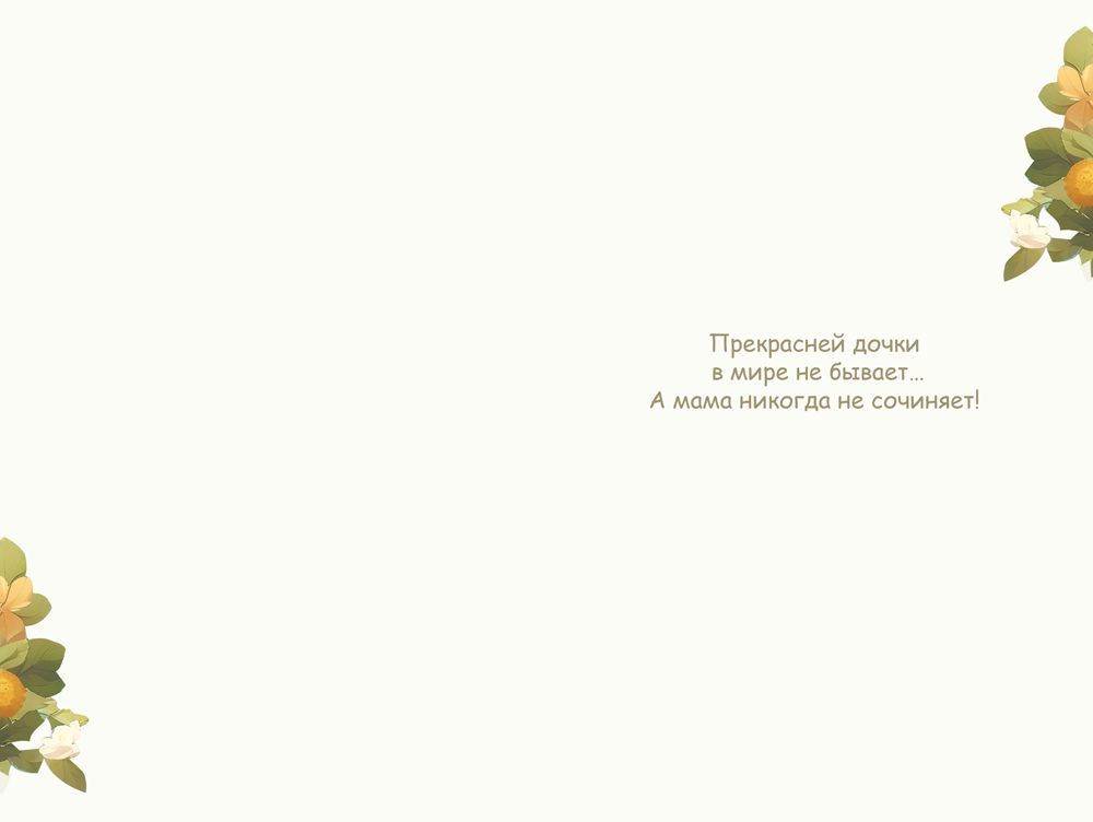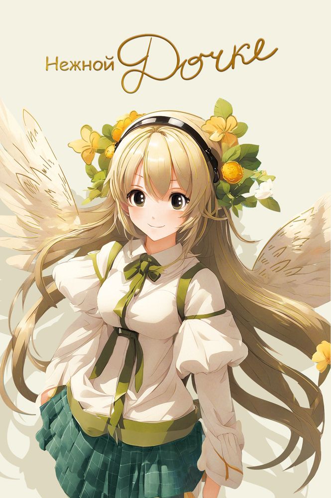 Открытка формата А5 с текстом предназначена для поздравления дочери и ориентирована на использование в розничной продаже и в ассортименте оптовых поставок. Лицевая сторона оформлена цветным изображением в аниме-стилистике: девушка с крыльями и венком из жёлтых и белых цветов, надпись «Нежной дочке» выполнена декоративным шрифтом с применением фольги золотой, что придаёт акцент заголовку и делает открытку заметной на витрине. Внутри предусмотрен готовый текст пожеланий, что снижает затраты времени на оформление поздравления и удобно при массовых закупках для сетевой розницы, книжных магазинов, сувенирных и цветочных точек. Изделие изготовлено из плотного дизайнерского картона, обеспечивающего достаточную жёсткость, устойчивость к деформации при транспортировке и сохранение формы при длительном хранении на складе или в торговом зале. Поверхность картона подходит для стандартных шариковых и гелевых ручек, что позволяет при необходимости дополнить печатный текст личной надписью. Габариты готового изделия 182 × 122 мм соответствуют распространённому формату А5, совместимы с типовыми почтовыми конвертами и упаковочными пакетами, что упрощает логистику, формирование наборов и выкладку по размерным рядам. Открытка поставляется по 10 штук, что удобно для планирования закупок, формирования полочного запаса и учёта товарных остатков. Тематика оформления ориентирована на дни рождения, семейные праздники и памятные даты, связанные с дочерью, поэтому позиция может использоваться как постоянная ассортиментная единица в категориях «семейные поздравления» и «детская тематика». Изображение с мягкой цветовой палитрой и акцентом на тёплые жёлто-зелёные оттенки делает изделие универсальным по возрасту дочери и сочетаемым с нейтральной подарочной упаковкой. Благодаря использованию дизайнерского картона и фольги золотой открытка сохраняет внешний вид при многократных перекладках, не требует специальных условий хранения и подходит для длительного оборота в розничной сети.
