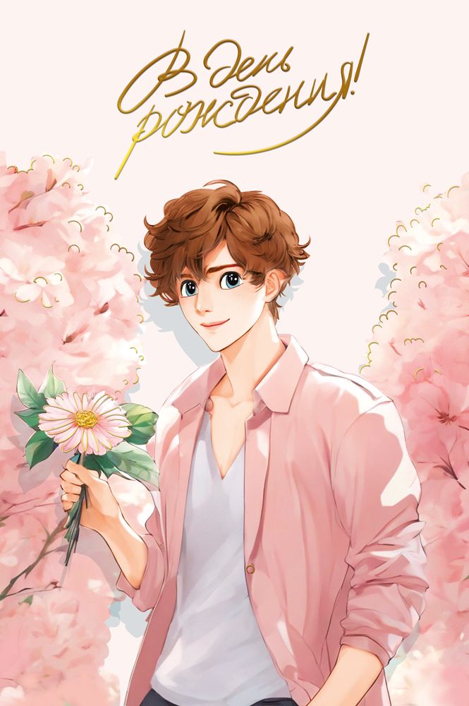 Открытка формата А5 предназначена для оформления поздравлений с днем рождения и рассчитана на использование как в розничной продаже, так и в оптовых поставках для магазинов, салонов подарков и интернет-площадок. Изделие выполнено из плотного дизайнерского картона, что обеспечивает стабильную геометрию, устойчивость к изгибам и сохранение первоначального вида при хранении и транспортировке. Размеры готовой открытки 182 × 122 мм позволяют удобно размещать ее в стандартных конвертах соответствующего формата и использовать в витринной выкладке без дополнительной подрезки или доработки. Лицевая сторона содержит полноцветное изображение в современном аниме-стиле: юноша с букетом на фоне цветущих деревьев, что делает открытку актуальной для поздравления подростков и молодежи, а также уместной в качестве нейтрального поздравления от друзей, родственников или коллег. Надпись «С днем рождения!» выполнена с применением золотой фольги, что придает композиции аккуратный акцент, повышает износостойкость декоративных элементов и улучшает читаемость текста при различном освещении. Внутри предусмотрен уже нанесенный поздравительный текст, позволяющий сократить время обслуживания покупателей в рознице и упростить выбор готового решения для дарения; при необходимости на свободных полях можно добавить персональное обращение от руки. Плотный картон обеспечивает совместимость с большинством типов ручек и маркеров без сильного просвечивания на обратную сторону. Открытка поставляется по 10 штук, что удобно для формирования планируемых остатков на складе, группировки по возрастным и тематическим линейкам ассортимента, а также для равномерной выкладки на полке. Конструкция изделия не содержит дополнительных объемных элементов, поэтому открытки компактно укладываются стопами, не деформируются при транспортировке и подходят для отправки почтой в стандартных конвертах. Универсальный дизайн и нейтральная цветовая гамма позволяют использовать данную позицию как базовую в категории молодежных поздравительных открыток.