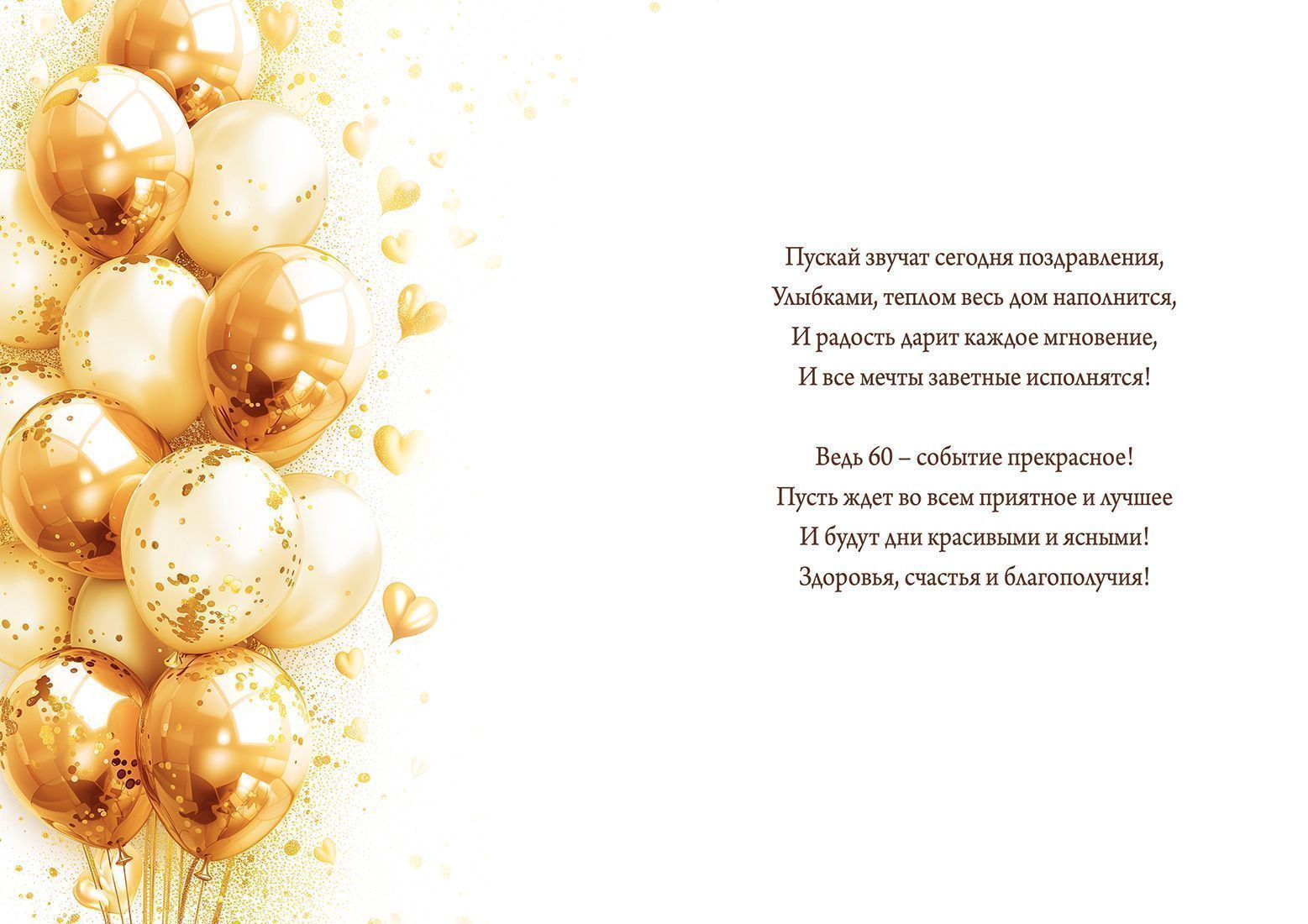 Открытка формата А4 предназначена для поздравления с 60‑летним юбилеем и ориентирована на использование в розничной продаже и оптовых поставках для магазинов подарочной и праздничной продукции. Изделие изготовлено из плотного картона, обеспечивающего устойчивость к изгибам, истиранию и деформации при хранении и транспортировке, что важно при формировании крупных партий и длительном складском хранении. Лицевая сторона оформлена полноцветной печатью с изображением праздничного банкетного стола, многоярусного торта, шаров и декоративных элементов в золотисто‑белой гамме, на фронтальной части размещена крупная надпись «60» и текст «С юбилеем!», хорошо различимые с расстояния, что облегчает выкладку на витрине и быструю идентификацию покупателем назначения открытки. Дополнительно применена отделка фольгой золотого цвета, создающая выраженные акценты на цифрах, декоративных орнаментах и отдельных деталях композиции; такая технология повышает износостойкость лицевого слоя к истиранию, при этом открытка сохраняет первоначальный вид при многократном контакте в торговом зале. Внутри размещён поздравительный текст, позволяющий использовать изделие без дополнительной подписи либо дополнять его индивидуальными пожеланиями; это удобно для розничных клиентов и снижает временные затраты получателя при подготовке к торжеству. Размер готового изделия 277 × 196 мм обеспечивает достаточно большую площадь для наглядного изображения и комфортного размещения текста, при этом открытка остаётся совместимой с распространёнными форматами пакетов и конвертов для подарков. В упаковке 10 штук, что удобно для оптовых закупок, планирования ассортимента по возрастным категориям и равномерного распределения по торговым точкам; плоская форма и однородный формат позволяют компактно укладывать пачки в коробки, оптимизируя логистику и снижая риск повреждений при перевозке. Открытка подходит для поздравления как в семейном кругу, так и в корпоративной среде, может вручаться самостоятельно или в составе подарочного набора, сохраняя аккуратный внешний вид при стандартных условиях эксплуатации.