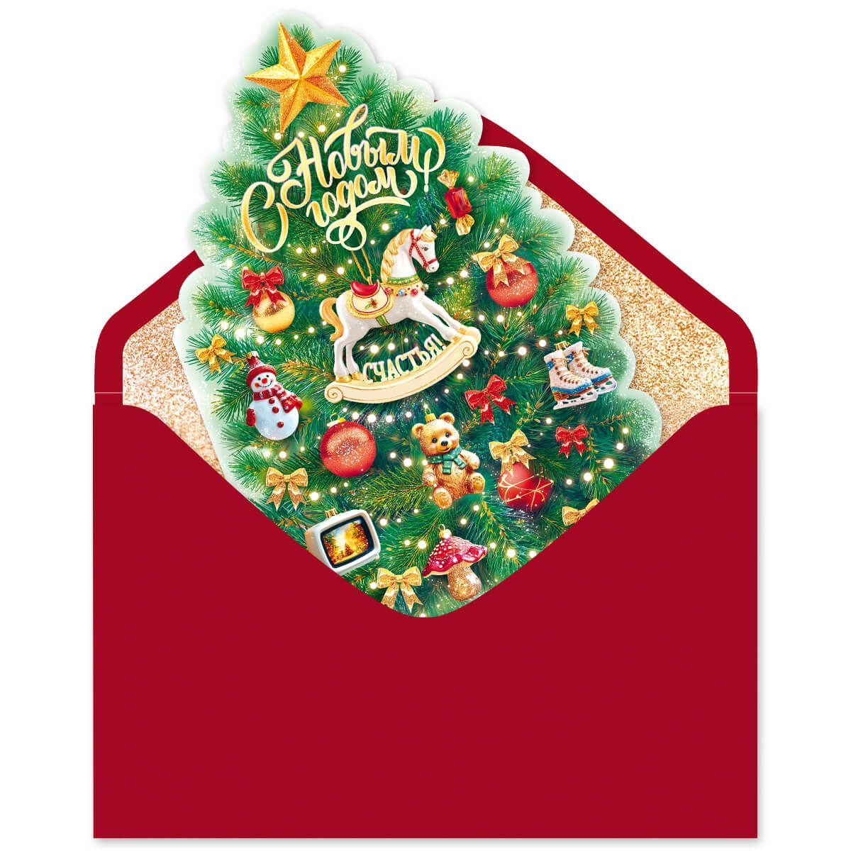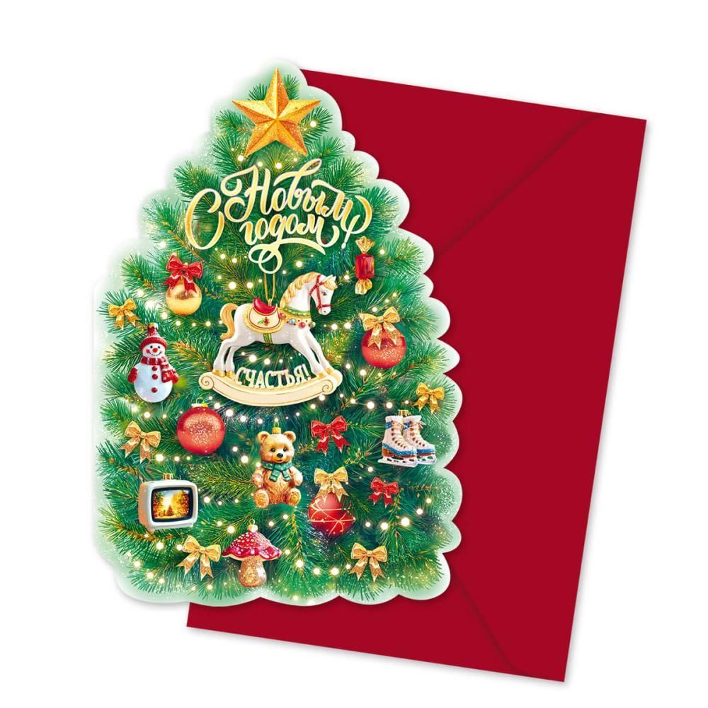 Открытка «С Новым годом! Счастья» с художественным конвертом