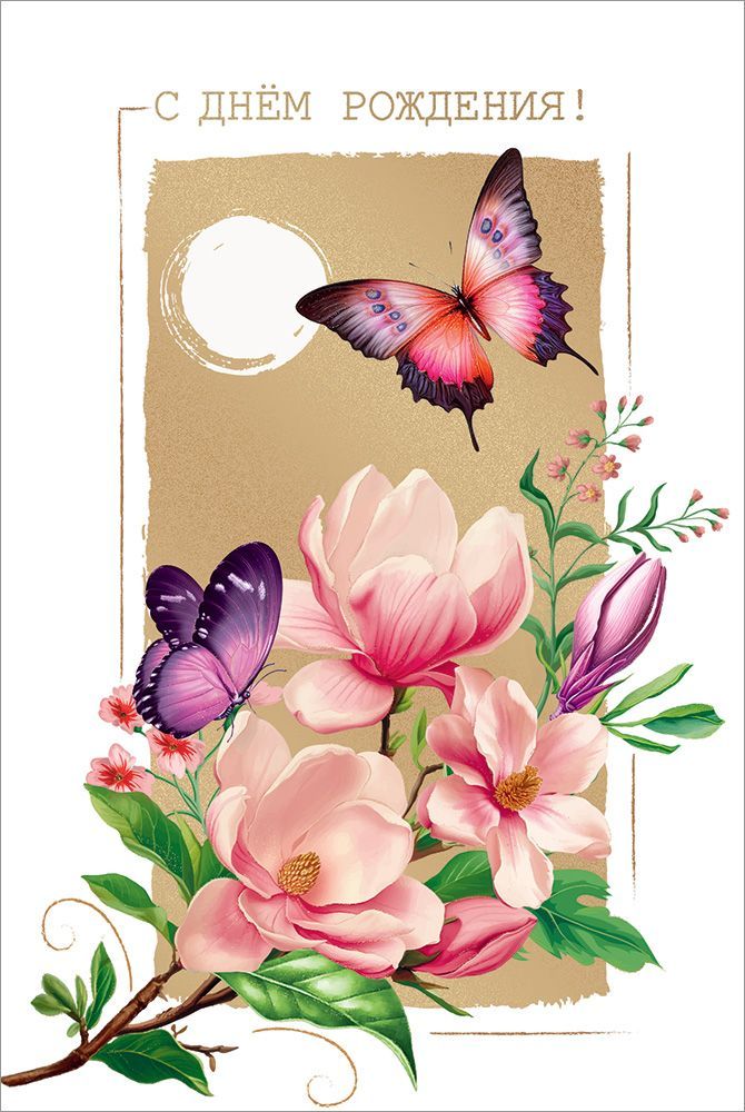 Открытка формата А5 предназначена для оформления поздравлений с днём рождения и ориентирована на использование в розничной продаже и оптовых поставках для магазинов подарочной и канцелярской продукции. Изделие изготовлено из плотного картона, что обеспечивает стабильную форму, устойчивость к деформации при хранении и транспортировке, а также аккуратный внешний вид при выкладке на витрине. Габариты готового изделия составляют 182 × 122 мм, что соответствует стандартному формату и удобно для комплектования с конвертами типовых размеров, формирования ассортиментных линеек и планирования полочного пространства. На лицевой стороне размещена цветная иллюстрация с крупными цветами и бабочками на светлом фоне с декоративным золотистым полем, в верхней части нанесена поздравительная надпись «С ДНЁМ РОЖДЕНИЯ!». Отделка выполнена с использованием золотых блёсток в лаке, что создаёт умеренный декоративный эффект и повышает износостойкость изображения за счёт защитного лаковогo слоя. Внутри открытки предусмотрен готовый печатный текст поздравления, что сокращает время обслуживания конечного покупателя и упрощает выбор для тех, кому важно быстро подобрать готовый вариант без необходимости самостоятельно составлять обращение. Плотный картон позволяет использовать стандартные стойки и лотки, открытки не прогибаются и сохраняют геометрию при многоразовом перелистывании. Упаковка содержит 10 одинаковых экземпляров, что удобно для формирования оптовых заказов, планирования остатков и равномерного распределения по торговым точкам. Универсальный цветочный мотив и нейтральный характер поздравления подходят для широкого круга получателей, что делает позицию пригодной как для базового, так и для расширенного ассортимента в сезонных и постоянных коллекциях поздравительных открыток.