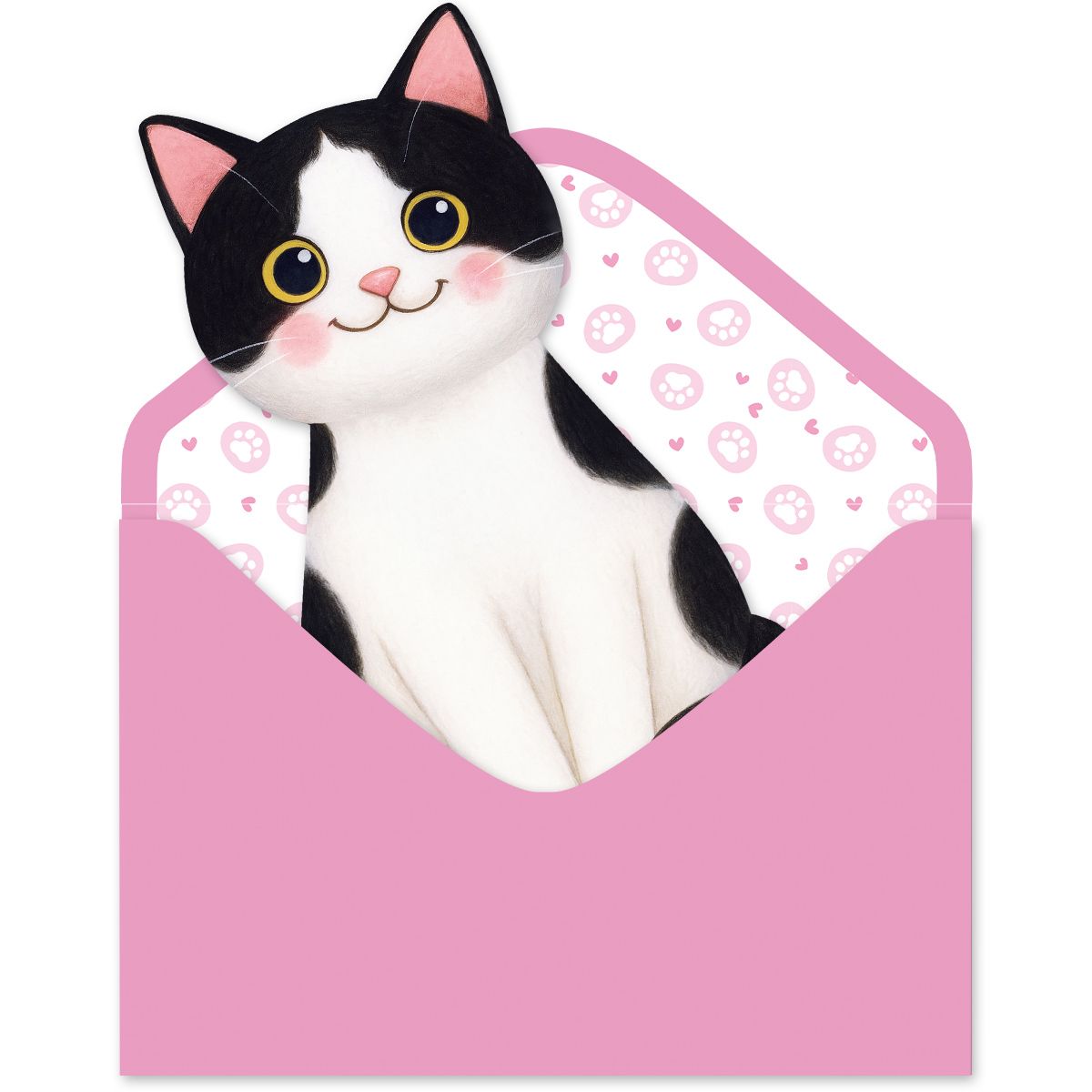 Открытка без надписи, котик черно-белый, с художественным конвертом