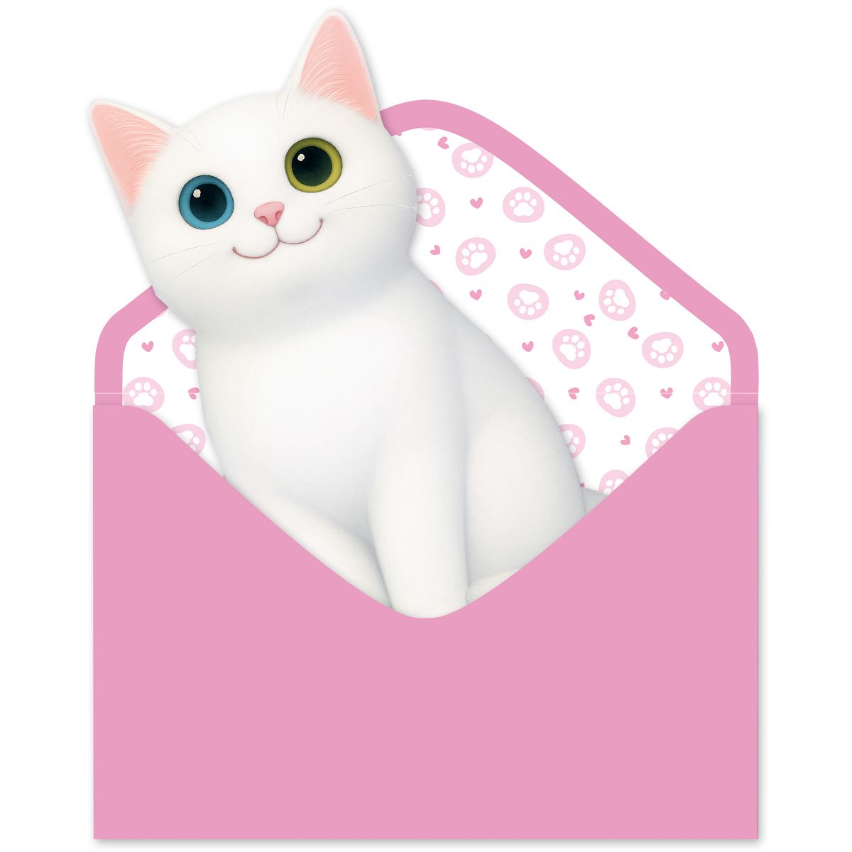 Открытка формата А5 изготовлена из плотного картона, обеспечивающего стабильную геометрию изделия при хранении, транспортировке и последующей эксплуатации. Готовое изделие имеет длину 188 мм и ширину 128 мм, что удобно для размещения в стандартных витринах и стеллажах, а также для пересылки почтовыми отправлениями. Конструктив предусматривает наличие художественного конверта розового цвета, подобранного по размеру к открытке, что упрощает комплектацию и позволяет использовать изделие как готовое решение «открытка + конверт» без дополнительных закупок. Открытка выполнена на картоне без дополнительной отделки, что снижает риск повреждений при массовой логистике, не требует особых условий хранения и облегчает укладку в коробки и транспортные лотки. Лицевая сторона оформлена изображением белого кота с разными по цвету глазами, что делает изделие заметным на полке и универсальным по тематике: открытка подходит для поздравлений с днём рождения, детских и семейных праздников, небольших сувениров, вложений в подарочные наборы и сопроводительных записок. Внутри нет печатного текста, поэтому розничный покупатель может самостоятельно сформулировать обращение, а для оптового клиента это расширяет охват целевой аудитории и снижает риски нереализованного сезонного остатка. Картонная основа хорошо подходит для письма шариковой и гелевой ручкой, маркерами и тонкими фломастерами, не даёт сильного просвечивания. Открытка и конверт сохраняют форму при аккуратной транспортировке, не требуют сложной упаковки, единица фасовки — 1. Изделие может использоваться в ассортименте книжных и канцелярских магазинов, сувенирных точек, зоомагазинов с подарочной зоной, интернет-площадок и корпоративных закупок как универсальная позиция для поддержания базового ассортимента поздравительных открыток.