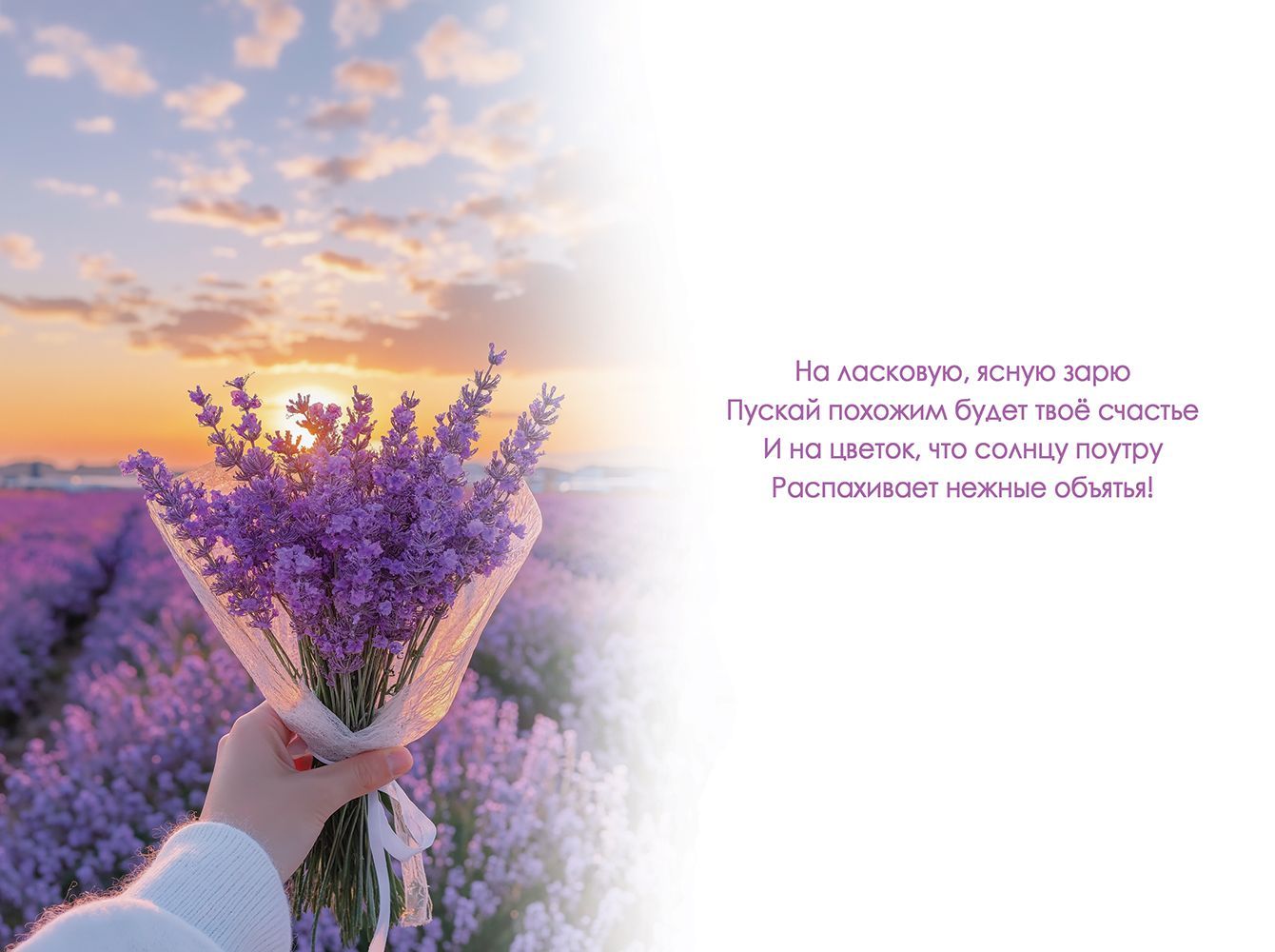Открытка формата А5 предназначена для поздравления с днём рождения и ориентирована на широкое использование в розничной продаже и оптовых поставках. Основа изделия выполнена из плотного картона, обеспечивающего стабильную геометрию и сохранность формы при транспортировке, хранении и многократном перелистывании. Готовый размер открытки составляет 182 × 122 мм, что удобно для стандартных витрин, почтовых отправлений и упаковки в наборы. Лицевая сторона оформлена фотографическим изображением букета лаванды на фоне заката с надписью «С Днём Рождения!», дополненной графическими элементами. Изображение покрыто прозрачным лаком с радужными блестками, создающими аккуратный декоративный эффект при искусственном и естественном освещении; покрытие устойчиво к истиранию и не осыпается при обычной эксплуатации. Внутри открытки размещён заранее напечатанный поздравительный текст, что позволяет использовать изделие без дополнительной подготовки, экономя время персонала в магазинах и у конечного покупателя. Плотность картона подобрана таким образом, чтобы открытка не деформировалась в стопках, не просвечивала и сохраняла первоначальный вид при длительном хранении на складе. Изделие поставляется по 10 штук, что удобно для формирования полочного ассортимента по тематике дня рождения, планирования закупок и учёта остатков. Открытка подходит для дарения как самостоятельно, так и в составе подарочного набора, легко комбинируется с конвертами стандартных размеров и упаковочной бумагой, что важно для торговых точек, предлагающих комплексное оформление подарков и сезонные выкладки.