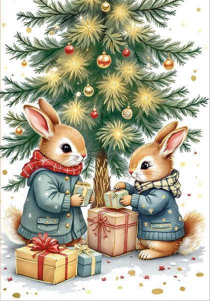 Открытка формата А6 выполнена из плотного картона, обеспечивающего стабильную геометрию изделия при хранении, транспортировке и выкладке в торговом зале. Готовый размер 100 × 70 мм позволяет использовать открытку как самостоятельный поздравительный элемент, так и в составе подарочного набора, не создавая излишнего объёма и легко размещаясь в стандартных конвертах и упаковках. Лицевая сторона оформлена полноцветным изображением новогодней тематики: на фоне ёлки с шарами и светящимися огнями изображены два зайца в зимней одежде с подарочными коробками, что делает дизайн понятным и универсальным для зимних праздников, корпоративных поздравлений, детских мероприятий и семейных подарков. Отделка УФ-лаком глянцевым и золотой фольгой подчёркивает отдельные элементы иллюстрации, создаёт выраженный визуальный акцент и повышает износостойкость поверхности за счёт дополнительного защитного слоя, устойчивого к истиранию и кратковременному воздействию влаги. Оборотная сторона оставлена без надписей и текстовых блоков, что упрощает адаптацию под любые сценарии использования: можно наносить индивидуальные поздравления, фирменные штампы, логотипы, краткие рекламные сообщения или персонализированные подписи вручную либо с помощью печати. Отсутствие заранее заданного текста делает открытку пригодной для работы с разными целевыми группами и языковыми регионами, упрощает интеграцию в существующий ассортимент сувенирной и подарочной продукции. Упаковка по 10 штук удобна для оптовых закупок: такой объём оптимален для распределения по торговым точкам, формирования тематических витрин и комплектования сезонных предложений, при этом открытки занимают минимум места на складе и в транспортной таре. Изделие рассчитано на стандартные условия эксплуатации в помещениях, сохраняет форму при многократном перекладывании, подходит для розничной продажи поштучно и в наборах, а также для использования в качестве вложения к подаркам, сертификатам и сувенирной продукции.