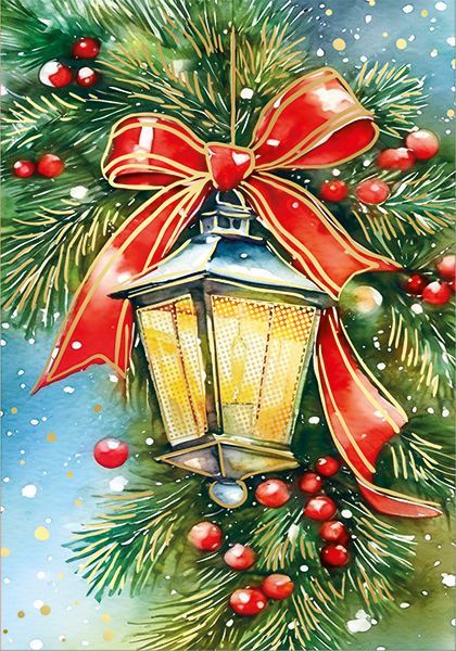 Открытка формата А6 изготовлена из плотного картона и предназначена для использования в качестве универсального новогоднего и зимнего поздравительного носителя в розничном и корпоративном сегментах. Размер готового изделия составляет 100 × 70 мм, что обеспечивает совместимость с большинством стандартных конвертов и удобство при хранении, фасовке и транспортировке крупными партиями. На лицевой стороне размещена полноцветная иллюстрация с рождественским фонарем на фоне хвойных ветвей с красными ягодами и крупным красным бантом, выполненная в акварельной стилистике; композиция подходит для оформления поздравлений к Новому году, Рождеству, зимним корпоративным мероприятиям и сезонным акциям. Отделка с применением глянцевого УФ-лака и золотой фольги выделяет отдельные элементы изображения, повышает износостойкость лицевой поверхности, устойчивость к истиранию и воздействию света, что важно при выкладке на витринах и частом перекладывании товара на складе. Внутренняя сторона открытки без надписей, с чистым полем для ручного текста или индивидуальной печати, что облегчает адаптацию под фирменный стиль компании, персонализацию для клиентов, партнеров и сотрудников, а также использование в качестве вложения к подарочным наборам и сувенирной продукции. Картонная основа удерживает форму, не деформируется при стандартных условиях хранения и транспортировки, допускает аккуратную подпись шариковыми и гелевыми ручками, маркерами и типографскую доработку малыми тиражами. Открытка поставляется по 10 штук в упаковке, что удобно для планирования оптовых закупок, формирования ассортимента сезонных предложений и равномерного распределения по торговым точкам. Универсальный зимний сюжет, отсутствие готового текста и нейтральная цветовая гамма делают изделие применимым как для личных поздравлений, так и для делового документооборота с подарочными вложениями.