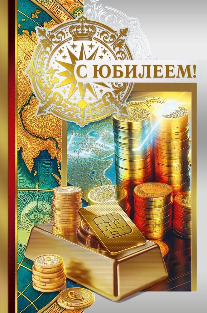 Открытка поздравительная формата А5 «С юбилеем» предназначена для оформления персональных поздравлений к юбилейным датам и может использоваться как в розничных покупках, так и в корпоративных и оптовых поставках. Изделие выполнено из плотного картона, обеспечивающего устойчивость к изгибам и истиранию при транспортировке, хранении и многократном перекладывании на складе. Габаритные размеры готовой открытки составляют 182 × 122 мм, что соответствует стандартному формату для конвертов аналогичного размера и упрощает подбор сопутствующей упаковки в ассортименте. Лицевая сторона оформлена тематическим изображением в деловом стиле: композиция с монетами, слитками и картографическими элементами подчеркивает идею финансового успеха и статуса юбиляра, подходит для мужской аудитории и для официальных поздравлений от организаций, партнеров и коллег. Надпись «С юбилеем!» выполнена с применением золотой фольги и пантонного серебряного слоя, что создает выраженный металлический блеск, хорошо читается при искусственном и дневном освещении и визуально выделяет изделие на витрине или в общей подборке поздравительных материалов. Внутри размещен заранее напечатанный текст поздравления, что сокращает время подготовки к вручению при массовых мероприятиях, корпоративных юбилеях и официальных приемах, а также удобно для розничного покупателя при единичной покупке. Плотный картон сохраняет форму при вертикальной установке открытки на столе или полке, что позволяет использовать ее как элемент интерьерного оформления рабочего кабинета или домашнего пространства. Упаковка содержит 10 изделий, что оптимально для формирования складского запаса, равномерной выкладки по торговым точкам и планирования закупок под серию юбилейных мероприятий. Открытка совместима с большинством стандартных почтовых и подарочных конвертов, не требует специальных условий хранения, допускает длительное хранение без потери яркости печати при соблюдении нормальной влажности и отсутствия прямого солнечного света, что важно для оптовых поставок и сезонного складирования.
