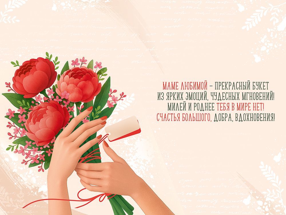 Открытка формата А5 «Любимой мамочке» предназначена для розничной продажи и оптовых поставок в ассортименте праздничной полиграфии. Изделие изготовлено из плотного картона, устойчивого к изгибам и истиранию, что обеспечивает сохранность формы и внешнего вида при транспортировке, хранении и выкладке в торговом зале. Готовый размер открытки 182 × 122 мм позволяет размещать её в стандартных конвертах и на типовых витринах. Лицевая сторона оформлена цветной печатью с крупной иллюстрацией букета цветов и надписью «Любимой мамочке», дополненной декоративной отделкой с применением золотой фольги, за счёт чего отдельные элементы изображения визуально выделяются и хорошо читаются при разном освещении. Внутри размещён готовый текст поздравления, что сокращает время выбора и делает открытку удобной для покупателей, которым важно быстро подготовить завершённый подарок ко Дню матери, дню рождения или семейному торжеству. Плотный картон сохраняет чёткость сгиба и устойчивость к многократному открыванию, что важно при длительном хранении в архивах и коллекциях. Открытка поставляется в количестве 10, что упрощает формирование полки, пополнение ассортимента и планирование закупок под сезонный спрос. Универсальный тематический дизайн ориентирован на широкий круг получателей и позволяет использовать данную позицию как базовый артикул в матрице подарочной продукции для сетевой и несетевой розницы, интернет-магазинов и корпоративных закупок.