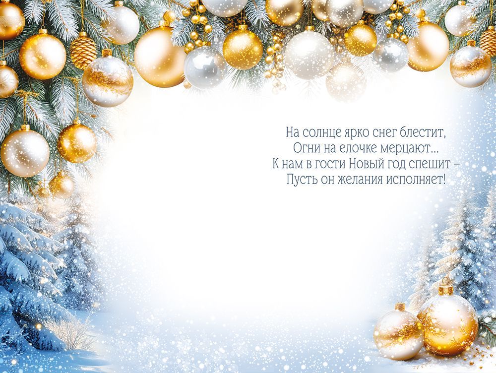 Открытка новогодняя формата А5 выполнена из плотного картона и предназначена для оформления поздравлений в сезонных ассортиментных линейках розничных магазинов, сувенирных отделов и корпоративных закупок. Лицевая сторона оформлена полноцветным изображением зимнего леса с еловыми ветвями и новогодними шарами в золотисто-белой гамме и содержит поздравительную надпись «С Новым годом!», что позволяет использовать изделие без дополнительного внешнего брендирования. Поверхность изображения покрыта глянцевым УФ-лаком, за счет чего картинка защищена от истирания, устойчивее к воздействию света и влаги при стандартных условиях хранения, а также удобна при частом перекладывании и транспортировке в оптовых партиях. Внутри открытки размещен готовый печатный текст поздравления, что сокращает время обслуживания покупателей в торговом зале и упрощает использование в качестве корпоративного сувенира при массовой рассылке партнерам и клиентам. Длина готового изделия составляет 182 мм, ширина 122 мм, размеры выдержаны с учетом стандартных почтовых и конвертных форматов, что облегчает подбор сопутствующей продукции и планирование полочного пространства. Картонная основа обеспечивает стабильную геометрию открытки, она не деформируется при вертикальной выкладке и сохраняет форму в коробах и лотках. В упаковке 10 штук, что удобно для формирования заказов кратно минимальным остаткам, равномерной выкладки по сетям и оптимизации складского учета. Изделие ориентировано на использование в розничных и оптовых каналах как универсальная новогодняя открытка для личных и деловых поздравлений, подходит для продажи поштучно и комплектами, а также для включения в состав подарочных наборов.