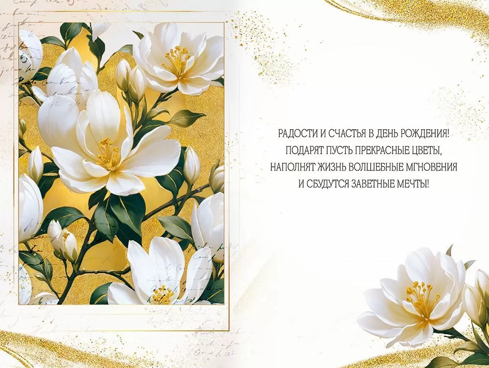 Поздравительный конверт для денег «С Днем рождения!» с изысканным дизайном преобразит любое торжество. На изделии – восхитительные цветы на золотом фоне, что делает общий внешний вид ярким и запоминающимся. Также внутри находится текст с приятными пожеланиями. Данный дизайнерский конверт для денег идеально подойдет в качестве основного подарка или как приятное дополнение к нему. Внутрь можно поместить любую денежную сумму, подарочный сертификат или билеты на концерт. Благодаря прочным материалам производства и качеству печати изделие удобно транспортировать и хранить – оно надолго сохранит свой яркий внешний вид, не помнется и не выцветет, что делает его не только хорошим подарком, но и прекрасным памятным сувениром!