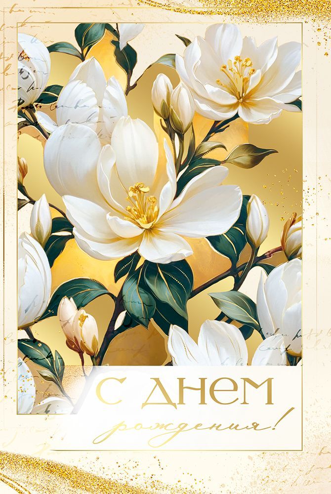 Открытка формата А5 предназначена для оформления поздравлений с днём рождения и ориентирована на использование в розничной продаже и оптовых поставках. Изделие изготовлено из плотного картона, обеспечивающего стабильную геометрию и устойчивость к деформации при транспортировке, хранении и эксплуатации. Готовый размер открытки 182 × 122 мм позволяет размещать её в стандартных конвертах соответствующего формата и удобно комплектовать витрины и стеллажи. Лицевая сторона оформлена изображением белых цветов на тёплом золотистом фоне с применением золотой фольги, за счёт чего отдельные элементы рисунка и надписи имеют выразительный металлический блеск и хорошо различимы при разном освещении, что важно при выкладке товара в торговом зале. На лицевой стороне размещён текст «С днём рождения!», внутри предусмотрен готовый поздравительный текст, что сокращает время подготовки к вручению и делает изделие удобным для покупателей, выбирающих готовое решение. Картонная основа подходит для стандартных шариковых и гелевых ручек, чернила не растекаются и не просвечивают при обычном режиме письма, что позволяет дополнять поздравление личными записями. Визуальное оформление универсально и подходит для широкого круга адресатов, что облегчает планирование ассортимента оптовому покупателю и снижает риск остаточных нереализованных позиций. Плотный материал и устойчивое к истиранию покрытие внешней поверхности сохраняют читаемость текста и целостность изображения при многократных перекладках и транспортировке. Открытка поставляется в упаковке по 10 штук, что удобно для формирования заказов, учёта на складе и равномерного распределения по торговым точкам.