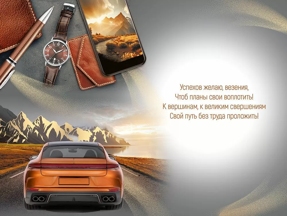 Поздравительный конверт для денег «Поздравляю!» с интересным дизайном преобразит любое торжество. На изделии изображена дорога, уходящая куда-то в горы. На переднем плане – автомобиль. Также внутри находится текст с приятными пожеланиями. Данный дизайнерский конверт для денег идеально подойдет в качестве основного подарка или как приятное дополнение к нему. Внутрь можно поместить любую денежную сумму, подарочный сертификат или билеты на концерт. Благодаря прочным материалам производства и качеству печати изделие удобно транспортировать и хранить – оно надолго сохранит свой яркий внешний вид, не помнется и не выцветет, что делает его не только хорошим подарком, но и прекрасным памятным сувениром!