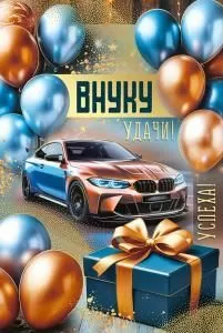Поздравительный конверт для денег «Внуку» с ярким дизайном преобразит любое торжество. Изделие украшено изображением автомобиля, а вокруг него – воздушные цветные шары. Также внутри находится текст с приятными пожеланиями. Данный дизайнерский конверт для денег идеально подойдет в качестве основного подарка или как приятное дополнение к нему. Внутрь можно поместить любую денежную сумму, подарочный сертификат или билеты на концерт. Благодаря прочным материалам производства и качеству печати изделие удобно транспортировать и хранить – оно надолго сохранит свой яркий внешний вид, не помнется и не выцветет, что делает его не только хорошим подарком, но и прекрасным памятным сувениром!