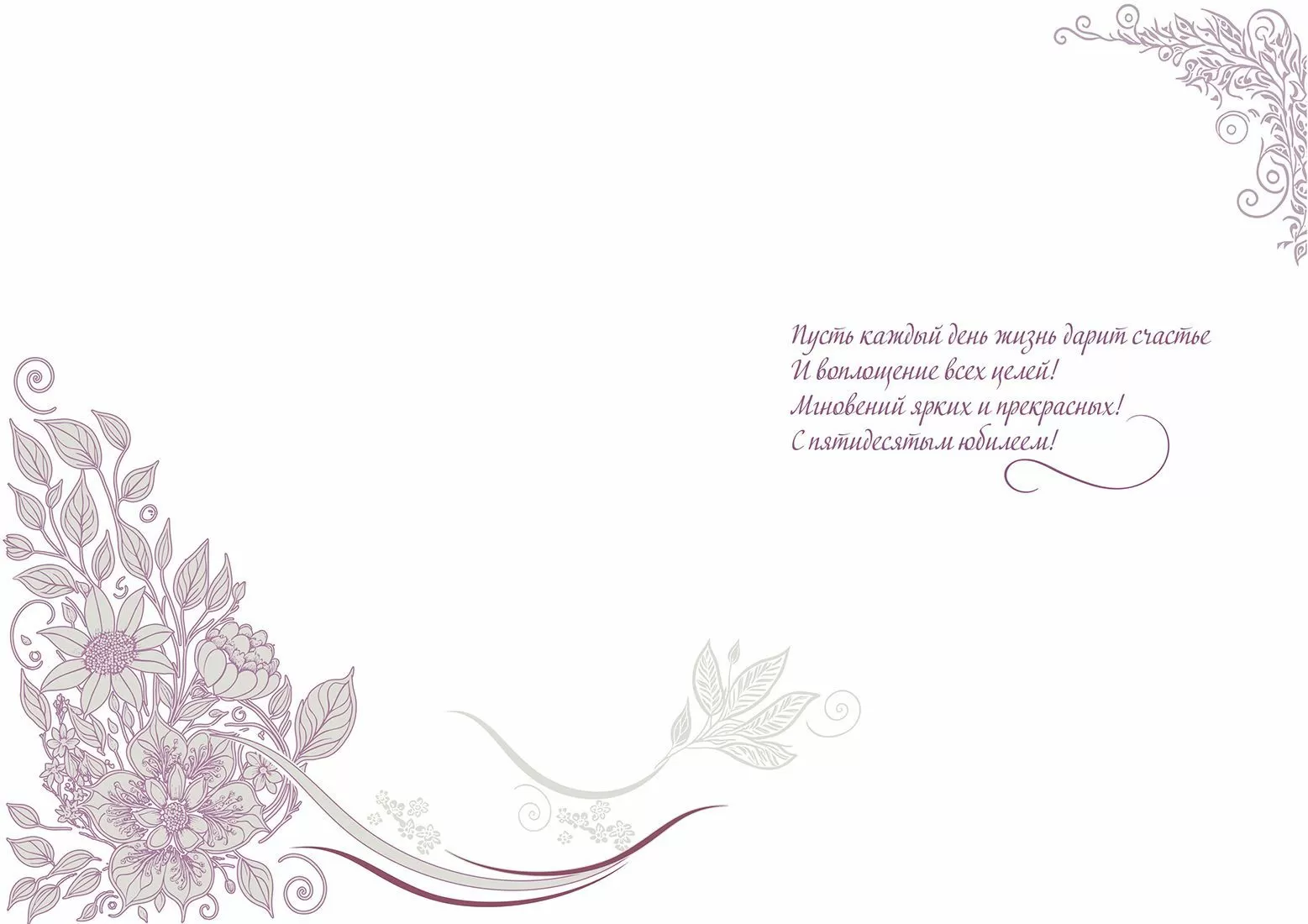 Открытка «С юбилеем! 50» в формате А5 станет прекрасным дополнением к подарку и украсит собой чудесный праздник. Классический нежный дизайн порадует каждую именинницу! Изделие украшено изображением букета роз в изысканной стеклянной вазе, а также изящными цветочными узорами. Внутри открытки – замечательные стихи с теплыми пожеланиями. Такой презент можно вручить в дополнение к основному подарку, чтобы украсить поздравление и сделать его более оригинальным. Изделие выполнено из качественных материалов, что обеспечивает ему прочность и долговечность, поэтому оно станет чудесным памятным сувениром для получателя.