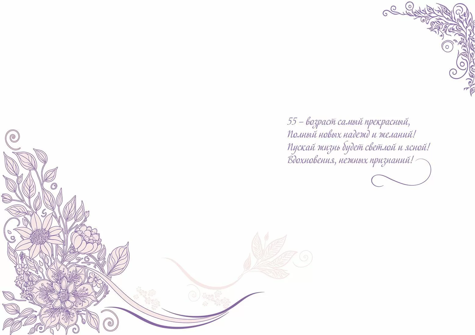 Открытка «С юбилеем! 55» в формате А5 станет прекрасным дополнением к подарку и украсит собой чудесный праздник. Изящный дизайн порадует каждую именинницу! Праздничный букет, оригинальные цветочные узоры, нежные пастельные оттенки – все это делает внешний вид изделия особенно запоминающимся. Внутри открытки – замечательные стихи с теплыми пожеланиями. Такой презент можно вручить в дополнение к основному подарку, чтобы украсить поздравление и сделать его более оригинальным. Изделие выполнено из качественных материалов, что обеспечивает ему прочность и долговечность, поэтому оно станет чудесным памятным сувениром для получателя.