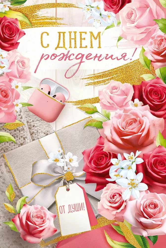 Открытка «С Днем рождения!» в формате А5 станет прекрасным дополнением к подарку и украсит любое поздравление. Романтичный дизайн придется по душе любой имениннице. Изображения беспроводных наушников в розовом чехле и подарочной коробки с атласной лентой обрамляет нежная цветочная композиция. Отделка золотыми блестками дополняет этот изысканный сюжет. Отличный вариант, чтобы поздравить подругу, сестру или дочку с Днем рождения. Внутри открытки – замечательные стихи с теплыми пожеланиями. Такой презент можно вручить в дополнение к основному подарку, чтобы украсить поздравление и сделать его более оригинальным. Изделие выполнено из качественных материалов, что обеспечивает ему прочность и долговечность, поэтому оно станет чудесным памятным сувениром для получателя.
