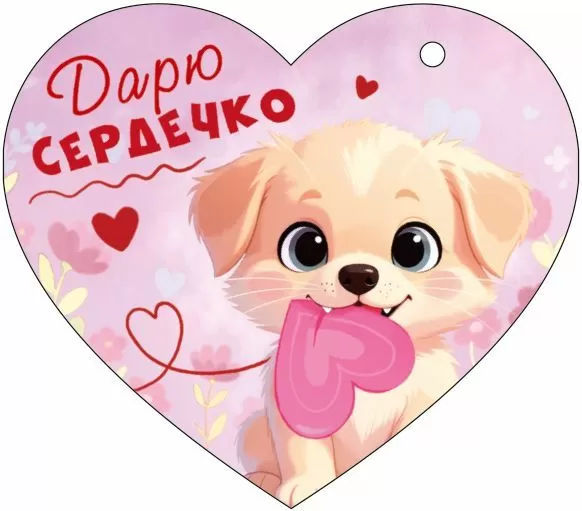Небольшая открытка «Дарю сердечка» в форме сердца – это милое и стильное дополнение к любому подарку. Нежные розовые оттенки и очаровательный щеночек с сердечком в зубах – самый лучший вариант для поздравления с Днем Святого Валентина. Такой дизайн растопит любое сердце и обязательно порадует вашего получателя. Внутри открытки также расположен текст с приятными пожеланиями. Изделие выполнено из качественных материалов, что обеспечивает ему прочность и долговечность. Его можно вложить в коробку с подарком или вручить отдельно.