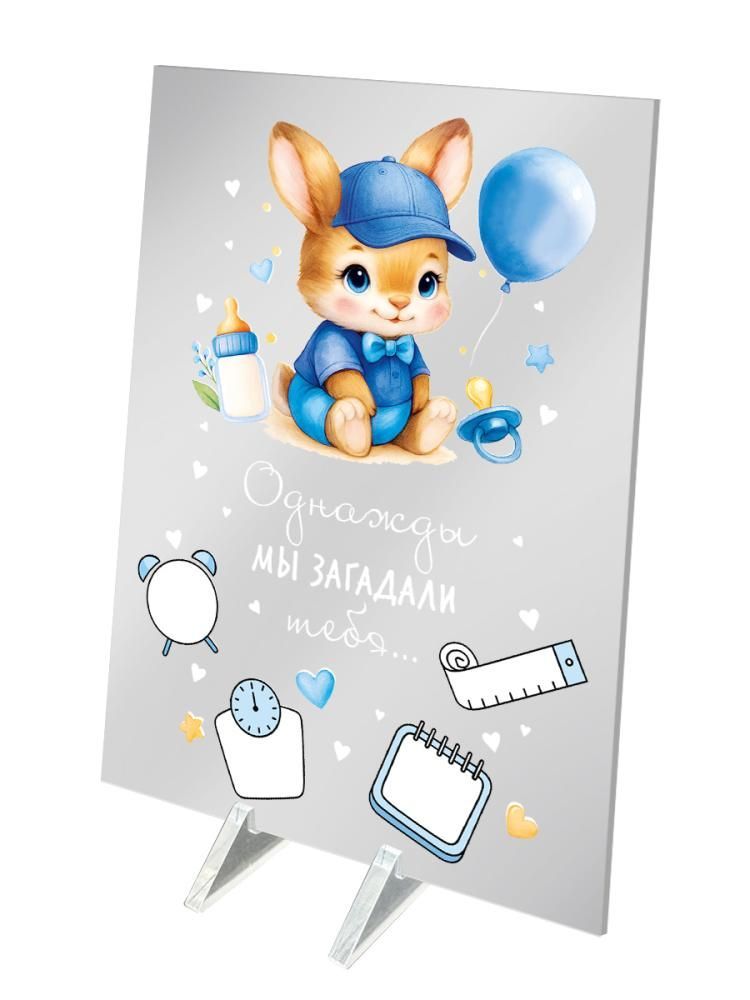 Открытка акриловая формата А5 представляет собой жесткое плоское изделие размером 200×140 мм на прозрачном держателе, предназначенное для настольной или полочной установки. Материал изготовления – акрил, обеспечивающий стабильную геометрию, стойкость к изгибу и сколам, а также устойчивость печати к истиранию при стандартной эксплуатации и транспортировке. Поверхность гладкая, с нанесением изображения методом полноцветной печати: на лицевой стороне размещена иллюстрация с зайчонком в голубой одежде, дополнительными детскими атрибутами и надписью «Однажды мы загадали тебя…», что определяет тематику изделия как поздравление с рождением мальчика или подготовку к выписке из роддома. Внутри открытка без текста, что упрощает универсальное использование в рознице и опте: изделие подходит для разных сценариев – в качестве самостоятельного поздравления, элемента декора детской, фотозоны, витринной выкладки или дополнения к подарочному набору. Акриловая основа не боится кратковременного контакта с влагой, легко очищается сухой или слегка влажной салфеткой, не деформируется при хранении в стопе, что удобно для складских остатков и сезонных поставок. Конструкция на держателе обеспечивает устойчивое вертикальное положение без дополнительных подставок, что снижает затраты на оформление торгового пространства и позволяет использовать открытку как готовый интерьерный объект. Нейтральная цветовая гамма с преобладанием серого и голубого хорошо сочетается с типовыми товарами для новорождённых, облегчая формирование витринных серий и подарочных комплектов. В упаковке 1, что удобно для поштучной выкладки, формирования штучных и наборных артикулов, а также точного расчета количества при оптовых закупках под конкретные мероприятия или ассортиментные матрицы.
