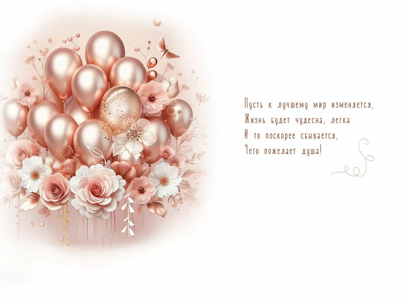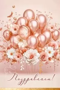 Поздравительная открытка "Поздравляем!" среднего формата – идеальное решение для подарка или дополнения к подарку! Размеры – 122х182. Внутри – поздравительное стихотворение. Украшенная золотыми блестками в лаке, открытка выглядит очаровательно и привлекает внимание. На открытке изображены воздушные шары и цветы. Изделие изготовлено из прочного материала, который хорошо держит форму и не помнется при транспортировке и использовании. Сверху на картонную основу нанесено четкое полноцветное изображение. Благодаря высокому качеству печати и защитному покрытию краски не выцветут, и открытка на праздник будет радовать адресата многие годы. В упаковке – 10 шт.