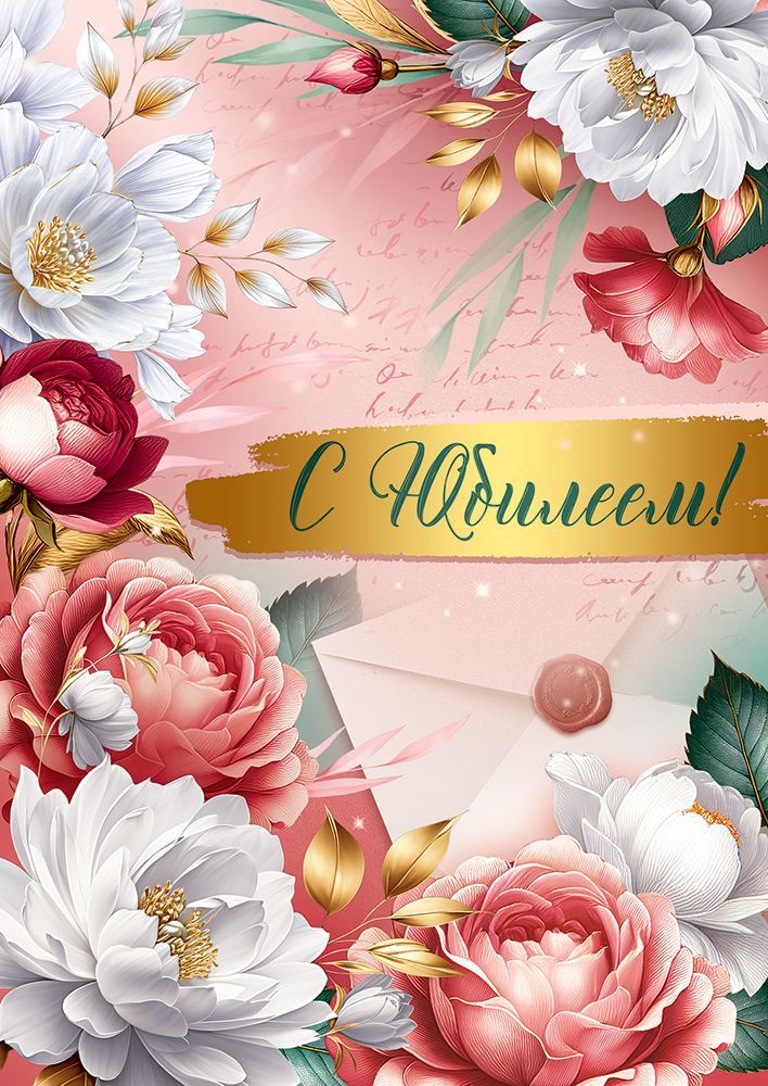 Открытка формата А4 предназначена для поздравления с юбилеем и ориентирована на использование в розничной продаже и оптовых поставках для магазинов подарочной продукции, книжных сетей и корпоративных заказчиков. Изделие выполнено из плотного картона, обеспечивающего стабильную геометрию и устойчивость к сгибам при транспортировке и хранении, что важно при складском учёте и выкладке крупными партиями. Готовый размер открытки составляет 277 × 196 мм, что позволяет размещать её как в стандартных витринных модулях для канцелярии, так и в напольных или настольных стойках. Лицевая сторона оформлена крупной цветочной композицией на фоне в розово-персиковой гамме с изображением конверта и надписью «С Юбилеем!», выполненной на декоративной золотистой плашке; декоративный эффект усилен нанесением радужных блёсток в лаке, за счёт чего элементы иллюстрации заметны при разном освещении и хорошо привлекают внимание на полке. Внутри открытки предусмотрен готовый поздравительный текст, что сокращает время выбора для конечного покупателя и делает изделие удобным для корпоративных поздравлений сотрудников и партнёров при массовых закупках. Плотный картон выдерживает многократное раскрытие, сохраняет форму при пересылке в конвертах соответствующего формата и не деформируется при вертикальной демонстрации на прилавке. Универсальный юбилейный сюжет подходит для адресатов разного возраста и статуса, что упрощает планирование ассортимента: одна позиция закрывает широкий спектр сценариев — от личных торжеств до официальных мероприятий. В упаковке 10 штук, что удобно для формирования заказов кратными тиражами, оптимизации складских остатков и равномерного распределения по торговым точкам.