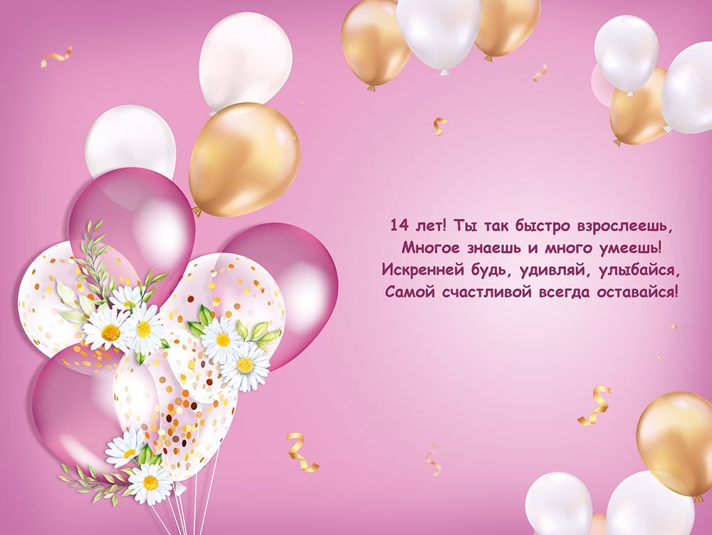 Открытка формата А5 предназначена для оформления поздравлений с четырнадцатилетием и подходит для использования в розничной продаже и в оптовых поставках для магазинов подарков, канцелярии и сетевого ритейла. Изделие изготовлено из плотного картона, обеспечивающего стабильную геометрию при хранении и транспортировке, устойчивость к изгибам и разрывам, а также сохранность печати при стандартных условиях эксплуатации. Лицевая сторона оформлена полноцветным изображением на розовом фоне с композициями воздушных шаров, крупных цифр «14» в виде золотых шаров и декоративных цветов, дополненных надписью «С Днем рождения!». В отделке применены радужные блестки в лаке, создающие умеренный переливающийся эффект при искусственном и естественном освещении, что визуально выделяет открытку на выкладке и придает изображению дополнительную глубину без утраты читаемости текста. Внутри предусмотрен готовый поздравительный текст, что сокращает время обслуживания покупателей в рознице и упрощает выбор конечному пользователю: открытка сразу готова к вручению, при необходимости оставляет место для личной подписи. Длина готового изделия составляет 182 мм, ширина 122 мм, что соответствует стандартному А5-формату и позволяет использовать типовые конверты, легко размещать товар на полочных и кассовых выкладках, в напольных и настольных стойках. Размеры и материал подобраны с учетом требований к групповой упаковке: открытки удобно штабелируются, не деформируются при транспортировке коробами и подходят для длительного складского хранения. В упаковке 10 штук, что обеспечивает удобное планирование закупок, формирование ассортиментных позиций по возрастной линейке и поддержание стабильного наличия товара в торговой точке, а для розничного покупателя дает возможность приобретения сразу нескольких идентичных поздравлений для одноклассников, друзей или мероприятий с большим числом гостей.