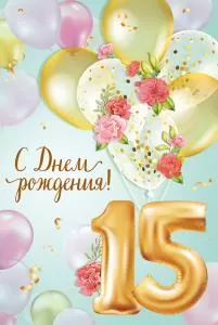 Открытка «С Днем рождения! 15» в формате А5 станет прекрасным дополнением к подарку и украсит любое поздравление. Яркий дизайн обязательно порадует любую именинницу! Изделие украшено изображениями воздушных шаров, цветов и конфетти в голубых, розовых и золотых оттенках, что оценит каждая юная красотка. Внутри открытки – замечательные стихи с теплыми пожеланиями. Такой презент можно вручить в дополнение к основному подарку, чтобы украсить поздравление и сделать его более оригинальным. Изделие выполнено из качественных материалов, что обеспечивает ему прочность и долговечность, поэтому оно станет чудесным памятным сувениром для получателя.