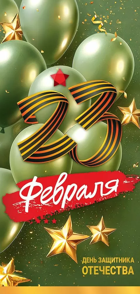 Поздравительная открытка «23 Февраля. День защитника Отечества!» формата евро идеально подходит в качестве подарка или дополнения к подарку. На открытке изображены воздушные шары, звезды и георгиевская лента. Внутри открытки есть праздничное поздравление. Открытка привлекает внимание и прекрасно подходит для торжественных событий. Изделие изготовлено из прочного материала, который хорошо держит форму. Открытка не помнется при транспортировке и использовании. Сверху на картонную основу нанесено четкое полноцветное изображение, покрытое глянцевым ВД-лаком. Благодаря высокому качеству печати и защитному покрытию краски не выцветут, и открытка на праздник будет радовать адресата многие годы. Размер 97х204 мм. В упаковке 10 шт.