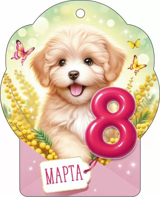Небольшая открытка «8 марта» в формате А6 – это очаровательный знак внимания и стильное дополнение к любому подарку. Изделие выполнено в виде конвертика, из которого высунулся миленький песик. Его окружает настоящая весна: желтые цветочки, бабочки и свет. Такой романтичный дизайн идеально подходит для поздравления близких с Международным женским днем. Качественные материалы производства и печати обеспечивают изделию прочность и долговечность. Дарите подарки с радостью!