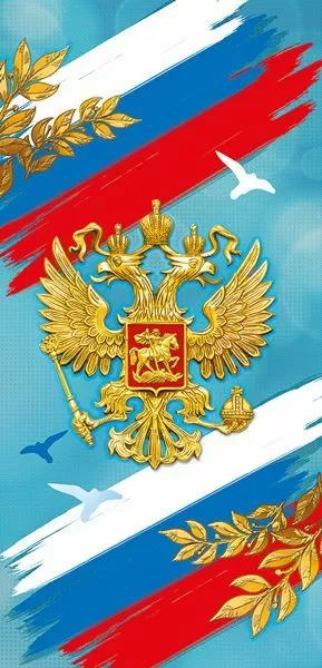 Яркая открытка с российским триколором и гербом РФ. Открытка станет отличным подарком на официальные государственные и профессиональные праздники: День России, День народного единства, 9 Мая, 23 Февраля и другие торжества. Открытка без надписей. Внутри можно написать несколько пожеланий для адресата.
