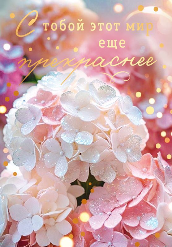 Открытка формата А7 изготовлена из плотного картона, что обеспечивает устойчивость к деформации при транспортировке и хранении, а также сохраняет внешний вид изделия при многократном перекладывании и выкладке на витрину. Лицевая сторона оформлена полноцветным изображением нежных цветочных соцветий в розово-белой гамме с мягкими световыми акцентами, поверх которых расположен внешний текст «С тобой этот мир еще прекраснее». Дополнительный визуальный эффект создается за счет отделки золотой фольгой: она используется для выделения надписи и отдельных декоративных элементов, придавая изображению выразительность и хорошую читаемость при разном освещении, в том числе на торговых стеллажах. Внутренняя сторона открытки без текста внутри и оставлена пустой, что позволяет использовать изделие в качестве универсального поздравительного носителя для разных поводов — дней рождения, юбилеев, личных и профессиональных праздников, а также как вложение к подарочной упаковке или цветочной композиции. Компактные размеры 100 × 70 мм удобны для размещения в стандартных конвертах соответствующего формата, в подарочных коробках и пакетах, а также для экспонирования в прикассовой зоне и на настольных стойках. Картонная основа хорошо подходит для письма шариковыми и гелевыми ручками, маркерами и тонкими фломастерами, не давая чернилам сильно растекаться и просвечивать на лицевую сторону. Упаковка рассчитана на 10 одинаковых открыток, что облегчает планирование и учет при оптовых закупках, позволяет формировать однородные товарные выкладки и использовать позицию как стабильную ассортиментную единицу в сегменте недорогих поздравительных аксессуаров. Изделие ориентировано на регулярное пополнение полочного запаса, удобно при хранении в коробах и лотках за счет небольшого формата и ровной прямоугольной формы.