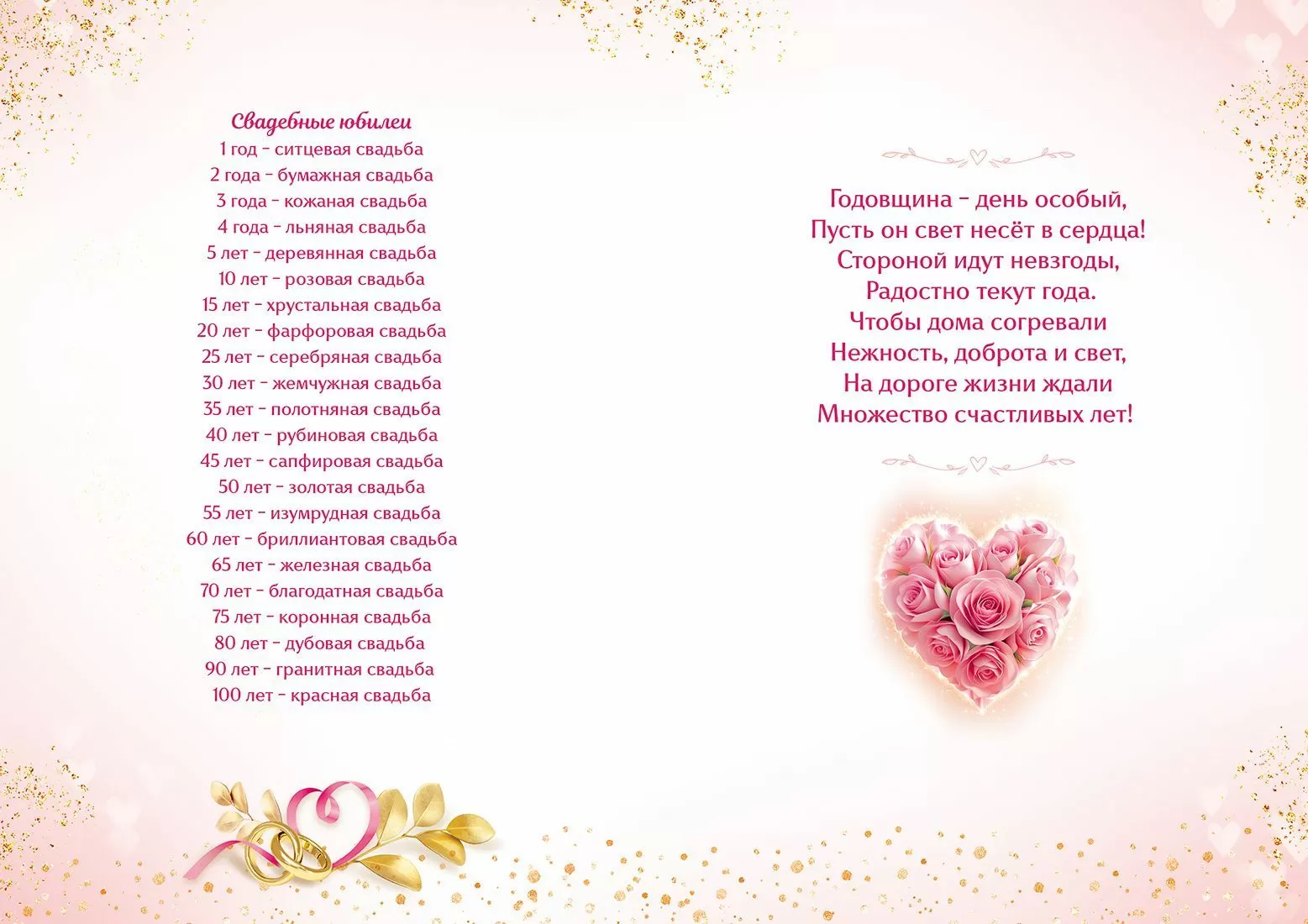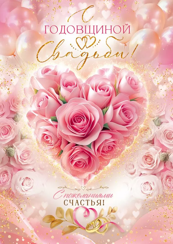 Открытка «С Годовщиной Свадьбы!» в формате А4 станет прекрасным дополнением к любому подарку.