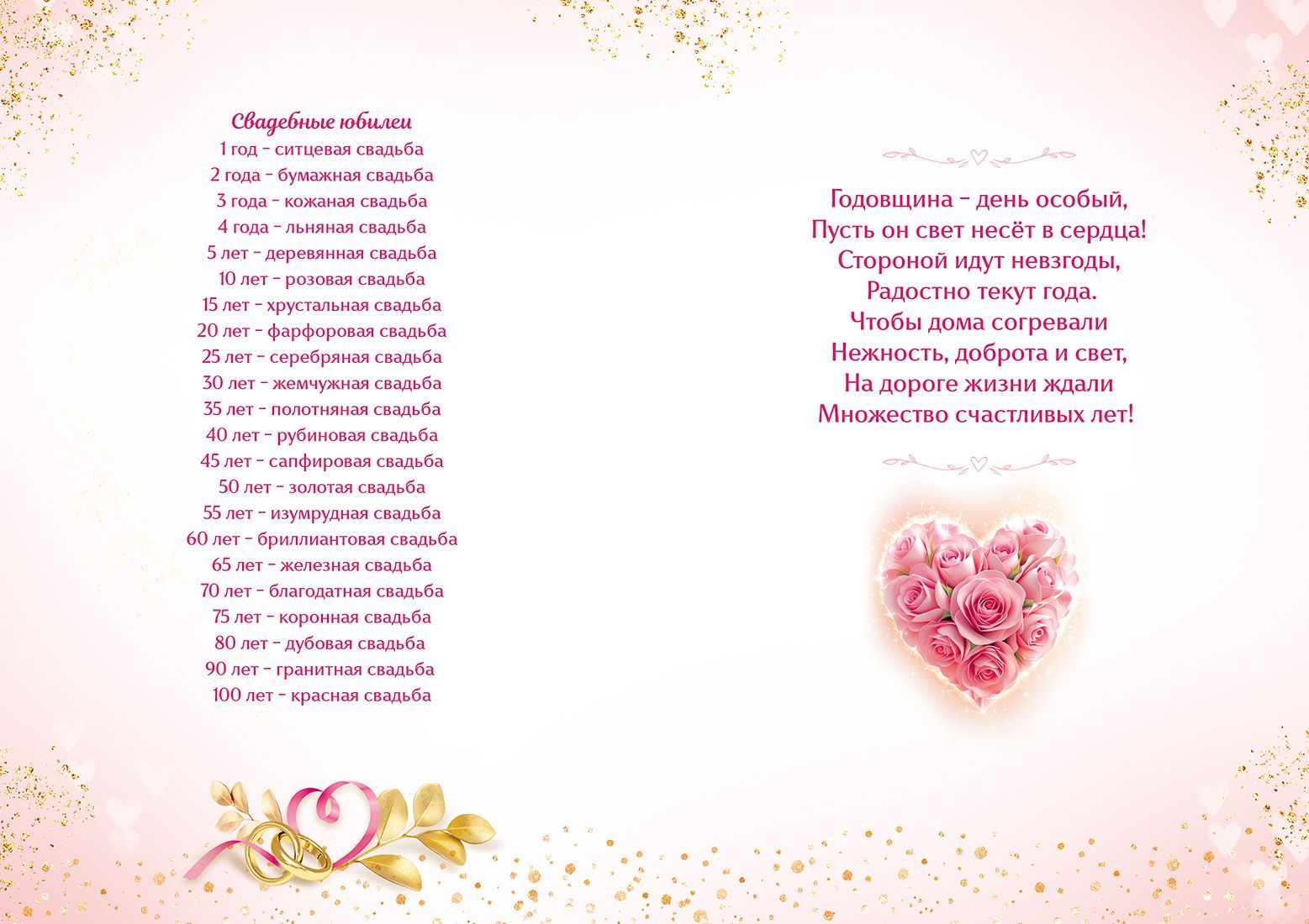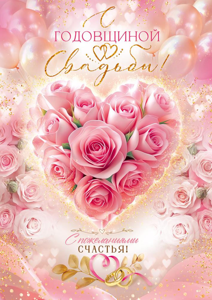 Открытка формата А4 предназначена для поздравления с годовщиной свадьбы и ориентирована на использование в розничной продаже и в оптовых поставках для магазинов подарочной и праздничной продукции. Изделие изготовлено из плотного картона, что обеспечивает устойчивость к деформации при транспортировке и хранении, а также сохраняет форму при длительном экспонировании на витрине или в напольных и настольных дисплеях. Лицевая сторона оформлена крупной композицией из розовых роз в форме сердца, фоном служат воздушные шары и цветы в пастельной розово-золотистой гамме; предусмотрен поздравительный текст «С годовщиной свадьбы!» и «С пожеланиями счастья!», выполненный декоративным шрифтом. Дополнительный визуальный акцент создают золотые блестки в лаке, равномерно распределенные по изображению, благодаря чему открытка хорошо смотрится под разным освещением и привлекает внимание на полке. Внутри размещен готовый поздравительный текст, что удобно для покупателей, предпочитающих готовое решение без необходимости составлять обращение самостоятельно; при этом свободное пространство позволяет при желании добавить персональное поздравление от руки. Габариты готового изделия составляют 277 × 196 мм, что облегчает подбор стандартных конвертов соответствующего формата и упрощает расчет места при выкладке и в складских ячейках. Плотный картон и стойкие печатные краски обеспечивают сохранность цвета и читаемость текста при многократном перелистывании и контакте с руками. Дизайн универсален для разных возрастных категорий супругов и подходит как для индивидуальных покупателей, так и для корпоративных дарителей, формирующих поздравительные наборы для сотрудников или клиентов. В одной упаковке — 10 открыток, что удобно для планирования оптовых закупок, формирования ассортиментных позиций и оптимизации логистики при поставках в торговые точки различного формата.