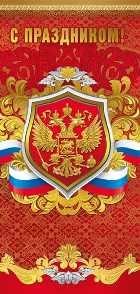 Открытка евроформата предназначена для оформления поздравлений в деловой и официальной обстановке, а также для розничного использования в семейных и праздничных мероприятиях. Изделие выполнено из плотного картона, что обеспечивает стабильную геометрию, устойчивость к изгибам и удобство при хранении в стандартных витринных и складских системах. Готовый формат составляет 204 × 97 мм, что позволяет размещать открытку в типовых конвертах евро и использовать в почтовых рассылках без дополнительных затрат на нестандартную упаковку. Лицевая сторона оформлена в красно-золотой гамме с изображением герба и триколора, надписью «С праздником!» и акцентами, выполненными с применением золотой фольги и глянцевого УФ-лака; такое сочетание повышает износостойкость печати, устойчивость к истиранию и придаёт изображению выраженный декоративный рельеф. Внутри открытка не содержит текста, что удобно для оптовых покупателей, формирующих универсальный ассортимент под разные поводы: изделие подходит для государственных, корпоративных и профессиональных праздников, вручения поздравлений сотрудникам, партнёрам и клиентам, а также для личных поздравлений. Плотный картон хорошо держит форму при экспонировании на витрине и в напольных или настольных дисплеях, не деформируется при многоразовом перекладывании и транспортировке. Нейтральный, но торжественный дизайн позволяет использовать открытку как самостоятельный элемент поздравления или в составе подарочных наборов. В упаковке 10 штук, что удобно при планировании закупок, учёте остатков и формировании равномерного выкладочного ряда.