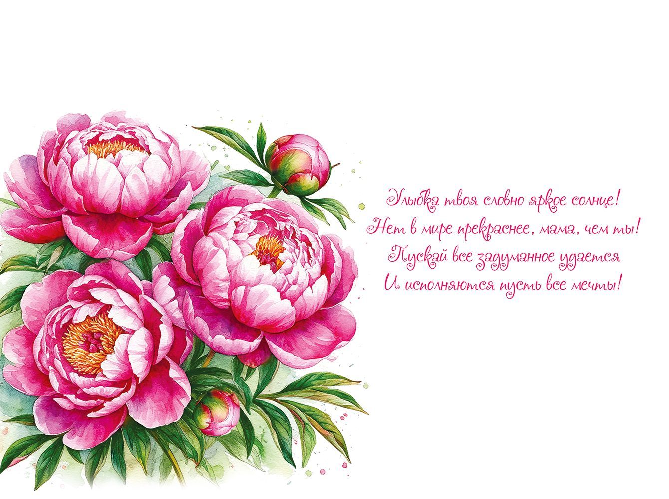 Открытка формата А5 «Любимой маме» предназначена для розничной продажи и оптовых поставок в сегменте праздничной продукции. Изделие выполнено из плотного картона, устойчивого к изгибам и механическим воздействиям при транспортировке, выкладке и хранении. Прямоугольный формат с габаритами 182 × 122 мм удобен для стандартных витрин, почтовых отправлений и упаковки в конверты соответствующего размера. Лицевая сторона оформлена цветной печатью с изображением крупных розово-красных пионов и надписью «Любимой маме», что определяет назначение открытки как универсального решения для поздравлений ко Дню матери, дню рождения, юбилею и другим семейным торжествам. Поверхность дополнительно декорирована радужными блестками в лаке, создающими умеренный мерцающий эффект при искусственном и естественном освещении; покрытие фиксирует блестки, снижает осыпание и повышает износостойкость лицевой стороны при частом контакте с руками. Внутри размещен заранее напечатанный текст поздравления, что сокращает время обслуживания розничных покупателей и делает позицию удобной для импульсных покупок: достаточно вписать имя адресата и подпись. Для оптового клиента наличие готового текста обеспечивает стабильный спрос в массовых сценариях использования — от ассортиментных линеек в магазинах подарков и книжных сетях до корпоративных закупок для поздравления сотрудников. Картонная основа хорошо держит сгиб, не растрескивается по линии фальца и сохраняет геометрию при длительном хранении в горизонтальных стеллажах и транспортных коробах. Размер и пропорции открытки позволяют формировать плотные стопки без деформации, оптимизируя использование складского пространства. В упаковке 10 одинаковых изделий, что упрощает инвентаризацию, учет остатков и планирование полочного пространства, а также обеспечивает единый визуальный ряд при выкладке.