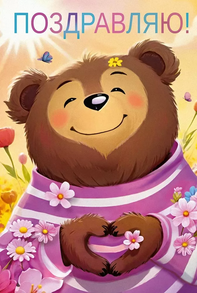 Открытка «Поздравляю!» в формате А5 станет прекрасным дополнением к подарку. Очаровательный дизайн с изображением мишки с широкой улыбкой обязательно порадует всех! Медведя окружают цветы, бабочки и яркий солнечный свет, что делает внешний вид изделия особенно ярким и привлекательным. Внутри открытки – замечательные стихи с теплыми пожеланиями. Такой презент можно вручить в дополнение к основному подарку, чтобы украсить поздравление и сделать его более оригинальным. Изделие выполнено из качественных материалов, что обеспечивает ему прочность и долговечность, поэтому оно станет чудесным памятным сувениром для получателя.