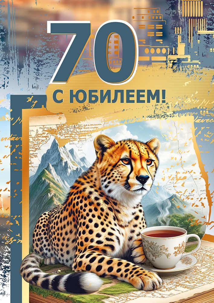 Поздравительная открытка формата А2 «70 лет. С юбилеем!» предназначена для оформления индивидуальных поздравлений и использования в качестве крупного настенного или настольного плаката при проведении юбилейных мероприятий. Изделие изготовлено из плотного картона, что обеспечивает устойчивость к изгибам, сохранение формы при вертикальном размещении и удобство транспортировки в типовых упаковках и коробах. Лицевая сторона содержит крупное числовое обозначение возраста «70» и текст «С юбилеем!», хорошо читаемые на расстоянии и подходящие для оформления залов, офисов, банкетных площадок и витрин. Центральный элемент композиции — изображение гепарда на фоне горного пейзажа с картами и чашкой чая, что делает открытку уместной для поздравления мужчин и женщин в деловой, семейной или дружеской сфере. Картонная основа позволяет наносить внутри или на обратной стороне персональные подписи, фирменные штампы, логотипы, использовать открытку как часть подарочного набора или элемента брендированного оформления. Для оптового покупателя формат А2 удобен при планировании выкладки: изделие хорошо заметно в торговом зале, может продаваться как самостоятельный поздравительный постер или как дополнение к подарочной продукции. Плотный картон сохраняет печать при стандартных условиях складского хранения, не требует специальных стеллажей и допускает штабелирование пачками. Тираж упакован по 10, что облегчает учет при оптовых поставках, формировании заказов и распределении по торговым точкам. В розничном использовании открытка подходит для оформления юбилейного стола, фотозоны, входной зоны в ресторане или дома, а также для вручения как крупного поздравительного послания, на котором могут расписаться сразу несколько человек, например коллектив или большая семья. Изображение и надписи выполнены в универсальной цветовой гамме, совместимой с большинством классических и современных сценариев декора.